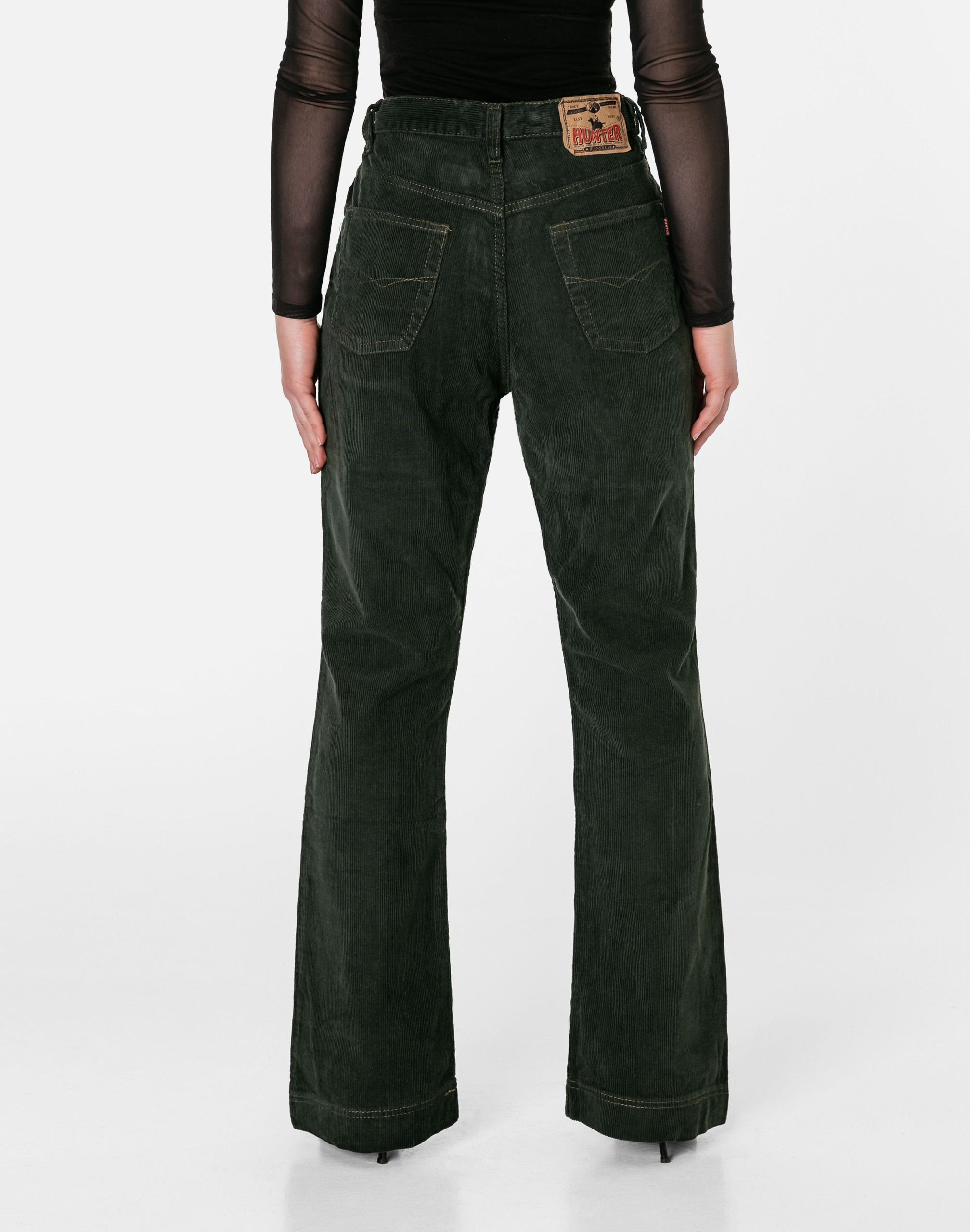 Spodnie sztruksowe polskiej firmy Hunter to powracające do łask sztruksy damskie typu "Dzwony Flare" o charakterystycznych dla tego modelu rozszerzających się dołem nogawkach i wyższym stanie "High Rise". Wyprodukowane z wysokiej jakości delikatnie elastycznej tkaniny sztruksowej w charakterystyczny drobny prążek, miękkiej i ciepłej, bardzo wygodnej w użytkowaniu, pozwalającej na pełną swobodę ruchów, co daje wygodę przy siadaniu i zapewnia ogromny komfort noszenia. Najmodniejsze w tym sezonie nowoczesne, szerokie nogawki "Flare" to pomysł na stylizację pozwalającą wyeksponować i podkreślić nogi, wyszczuplić sylwetkę oraz co ważne pięknie układają się w ruchu.