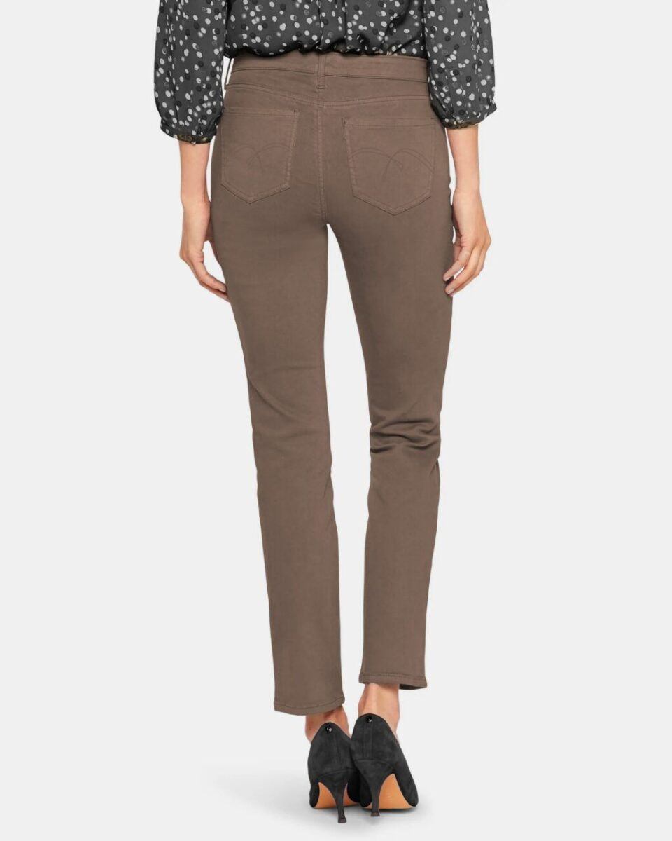 Spodnie damskie model 8913# to klasyczne, bardzo szykowne rurki w kolorze jasnym brązowym „Light Brown” z wąskimi nogawkami o wyszczuplającym optycznie kobiecą sylwetkę fasonie i wyższym stanie. Zapinane są na kryty zamek błyskawiczny i metalowy guzik sygnowany logiem firmy. Z przodu mają dwie kieszonki zaokrąglone oraz mniejszą kieszonkę tzw. bilonówkę, a na tyle klasyczne kieszenie naszywane jak w typowych spodniach jeansowych. W pasie szlufki umożliwiające stylizacje z paskiem. Najbardziej podatne na uszkodzenia miejsca wzmocnione są dodatkowymi przeszyciami oraz ozdobnymi nitami.