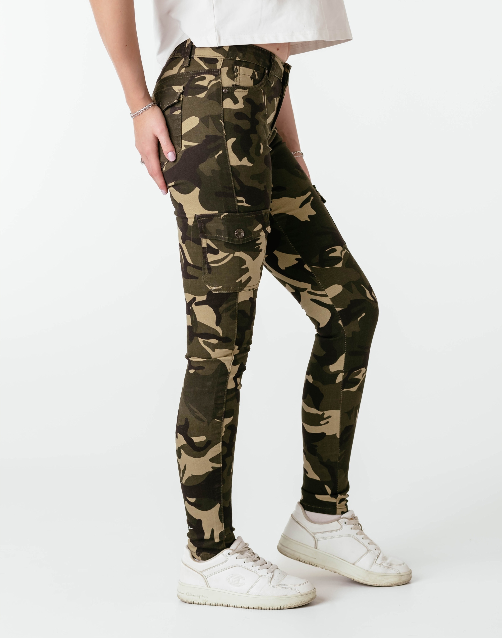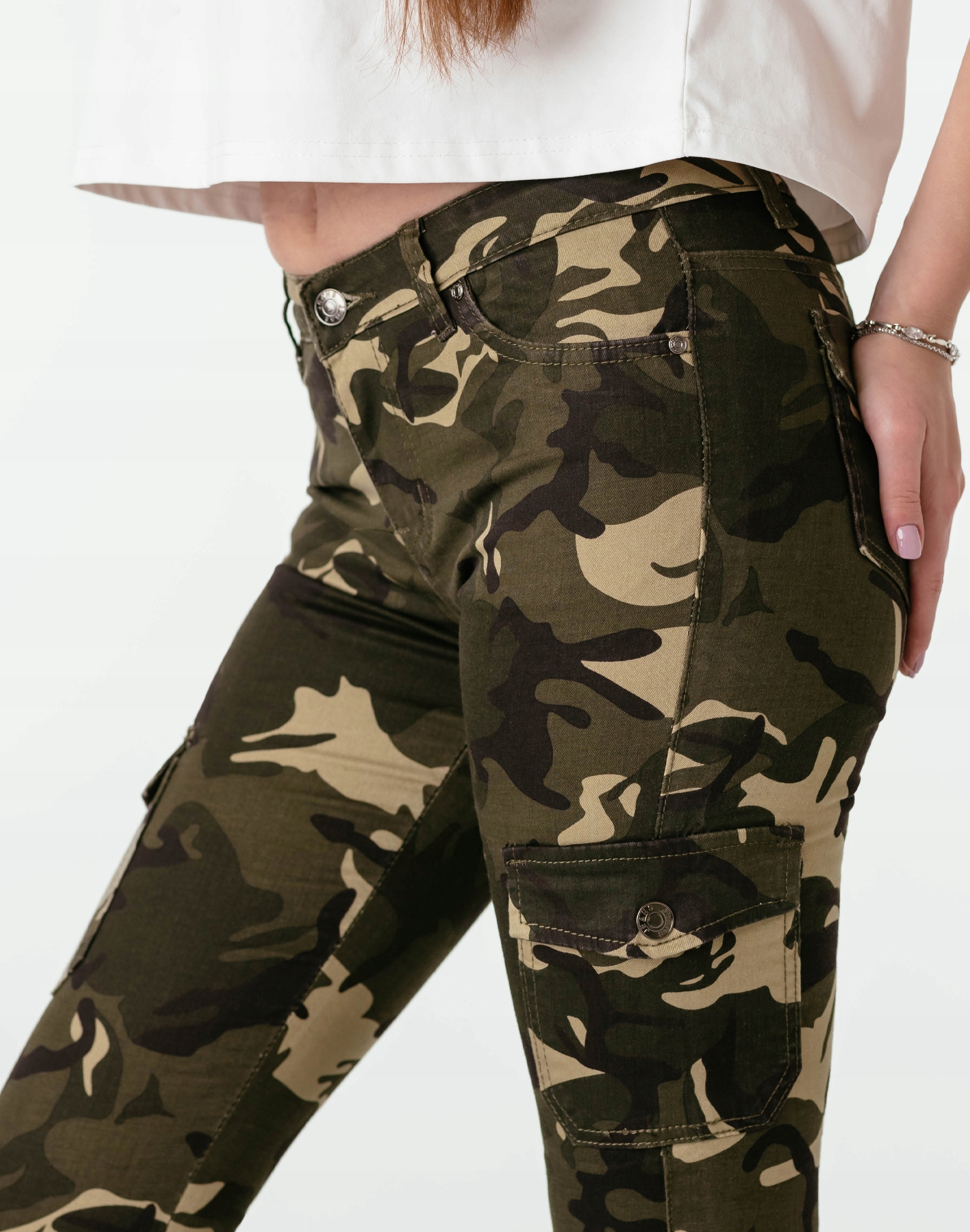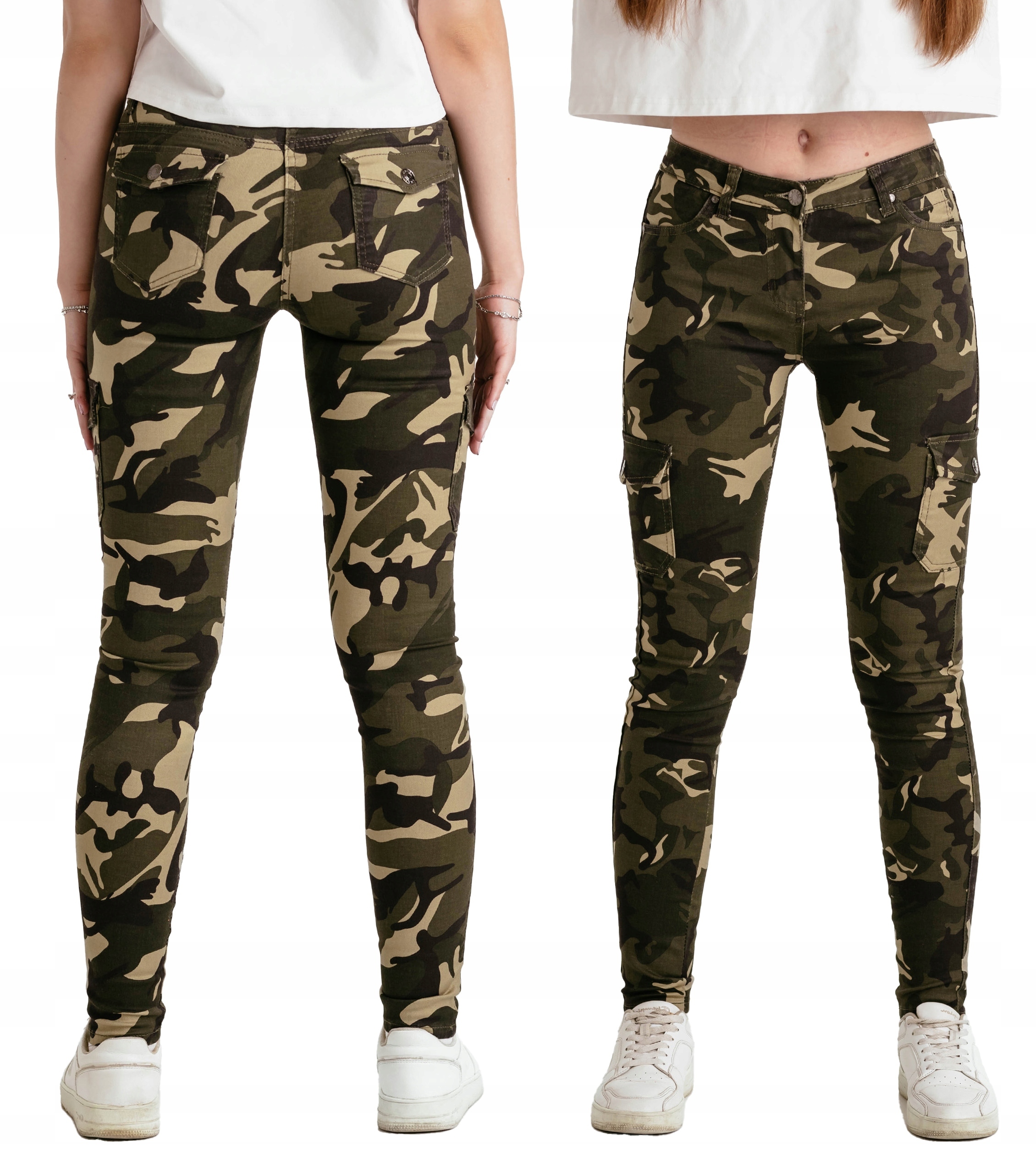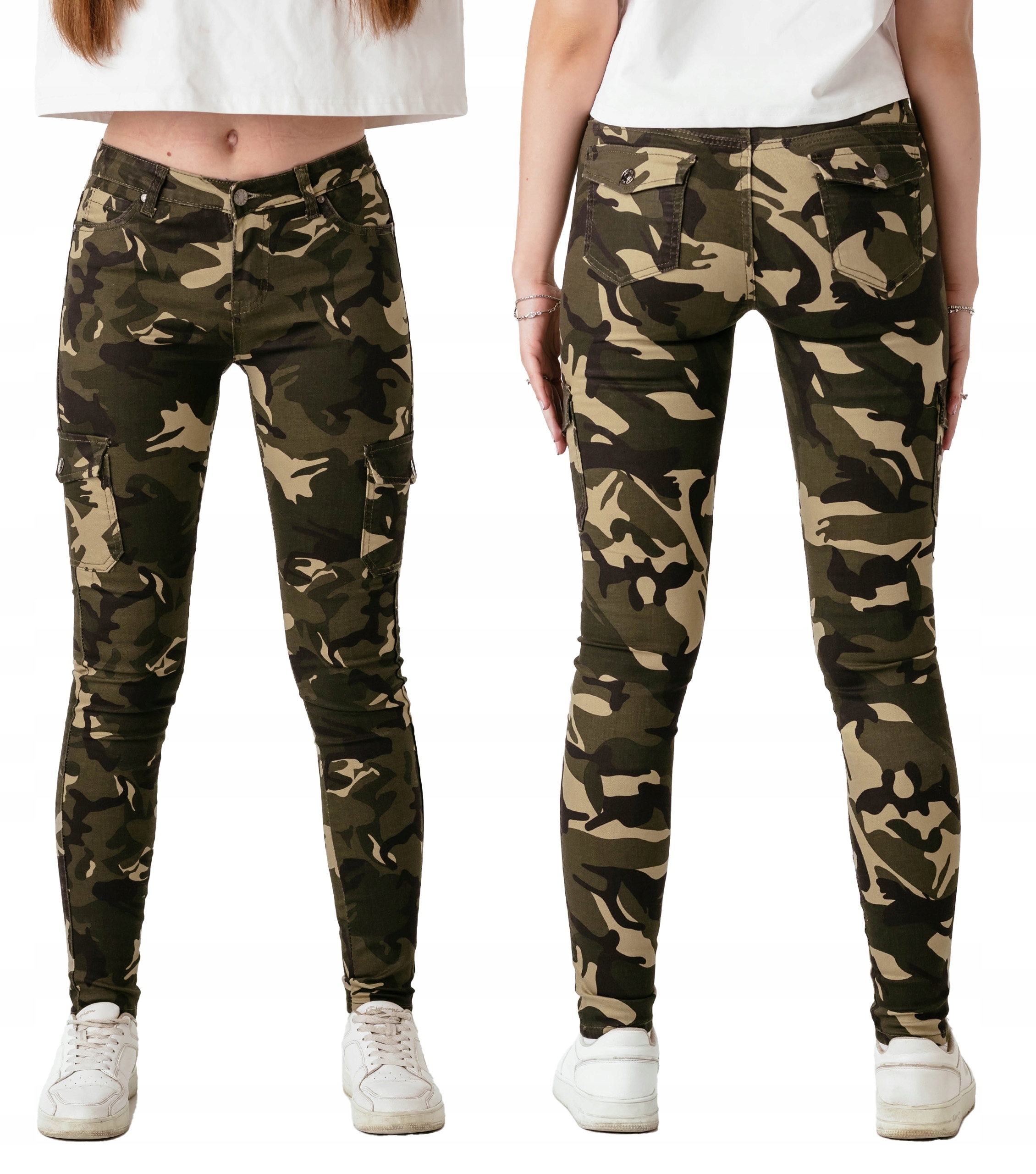 Spodnie Damskie Rurki Bawełniane Bojówki Moro Cargo Kamuflaż Jeans DJ148 66