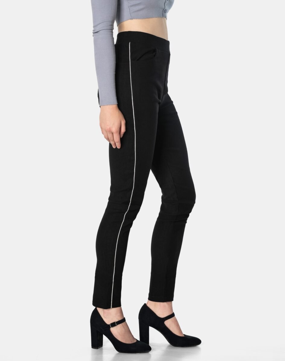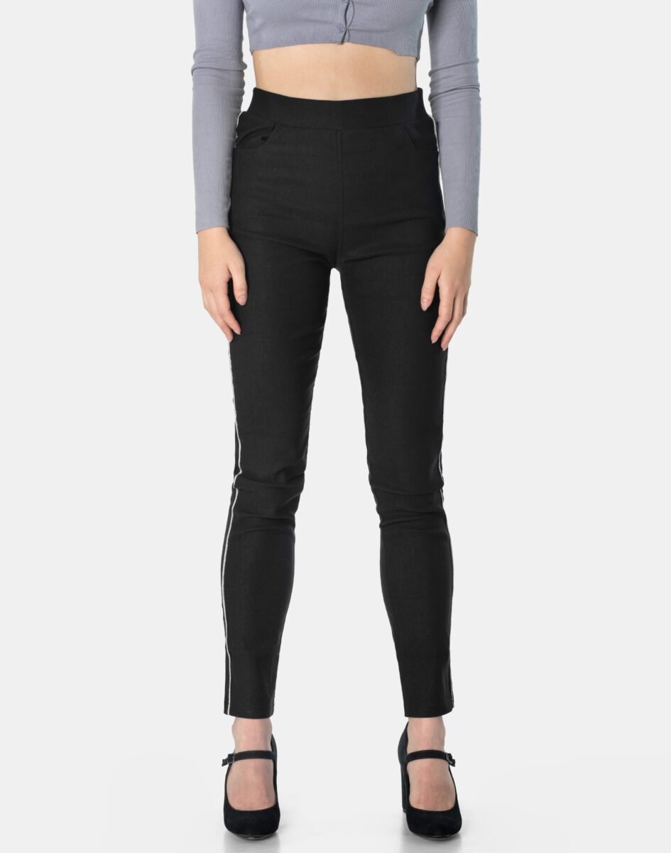 Wygodne Spodnie Damskie typu Rurki z Wysokim Stanem i Ozdobnymi Lampasami