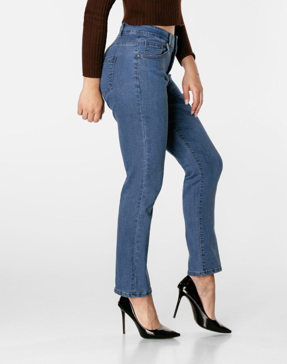 Jeansy damskie z wysokim stanem i prostą nogawką