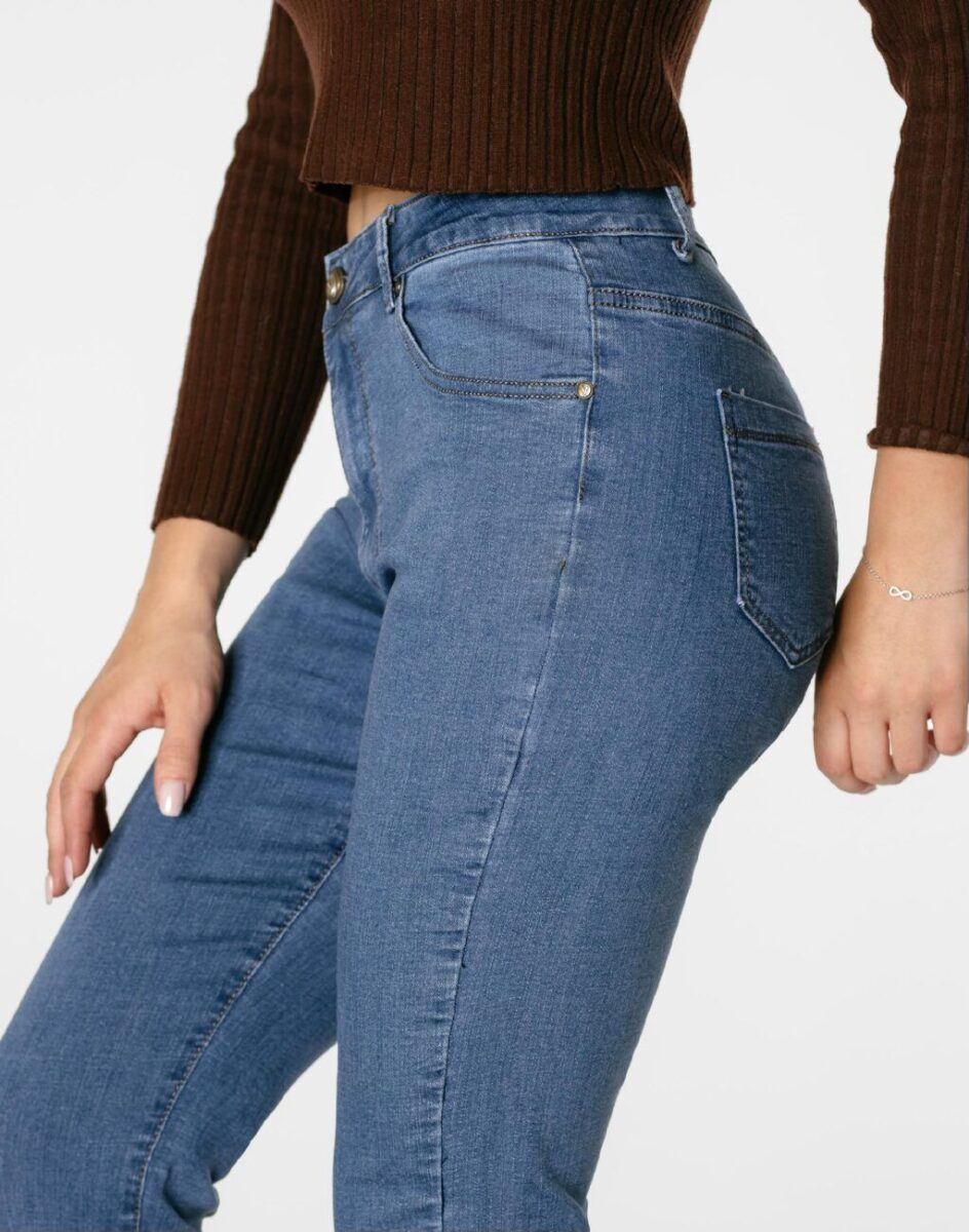 Oferowane przez nas spodnie uszyte są z wysokiej jakości bawełnianej tkaniny jeansowej „Light Blue Denim” z domieszką lycry, która odznacza się wysoką elastycznością, co gwarantuje że spodnie nie będą się deformować i odkształcać nawet po długim użytkowaniu. Jeansy świetnie przylegają do ciała i pozwalają na pełną swobodę ruchów, co daje wygodę przy siadaniu i zapewnia ogromny komfort noszenia. Możesz je śmiało łączyć zarówno ze szpilkami (idealnie wydłużają kobiece nogi), jak i obuwiem sportowym. Dobrze wyglądają również z podwiniętymi nogawkami. Niepozorne podwinięcie nogawek nadaje stylizacjom ciekawej nonszalancji i zadziorności. Zapewniają poczucie atrakcyjności przy jednoczesnym zachowaniu wygody i pełnej swobody ruchów.