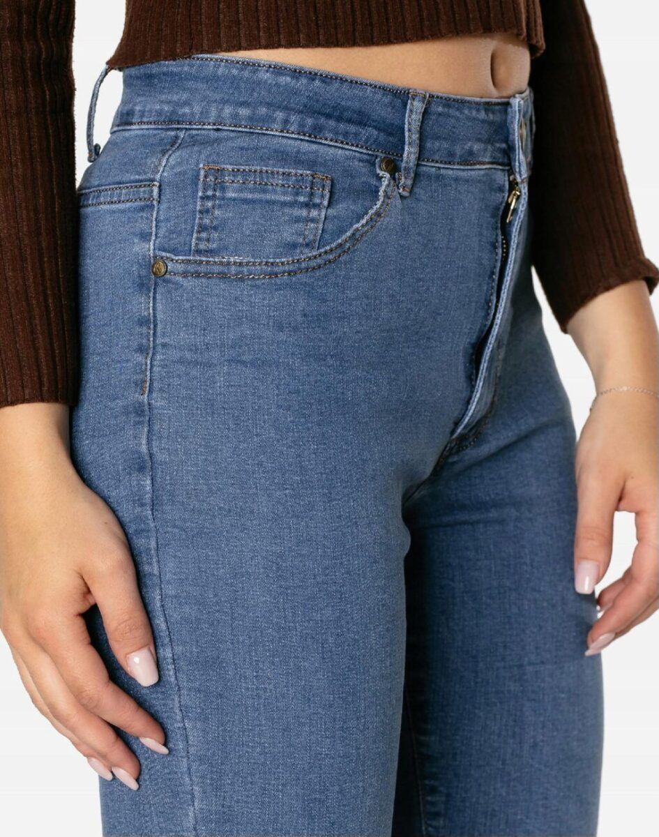 Oferowane przez nas spodnie uszyte są z wysokiej jakości bawełnianej tkaniny jeansowej „Light Blue Denim” z domieszką lycry, która odznacza się wysoką elastycznością, co gwarantuje że spodnie nie będą się deformować i odkształcać nawet po długim użytkowaniu. Jeansy świetnie przylegają do ciała i pozwalają na pełną swobodę ruchów, co daje wygodę przy siadaniu i zapewnia ogromny komfort noszenia. Możesz je śmiało łączyć zarówno ze szpilkami (idealnie wydłużają kobiece nogi), jak i obuwiem sportowym. Dobrze wyglądają również z podwiniętymi nogawkami. Niepozorne podwinięcie nogawek nadaje stylizacjom ciekawej nonszalancji i zadziorności. Zapewniają poczucie atrakcyjności przy jednoczesnym zachowaniu wygody i pełnej swobody ruchów.