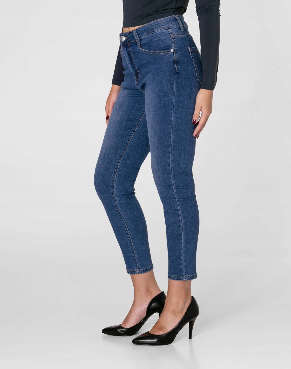 Niebieskie Spodnie Jeansy Damskie Rurki SLIM FIT ze Streczem i Wysokim Stanem