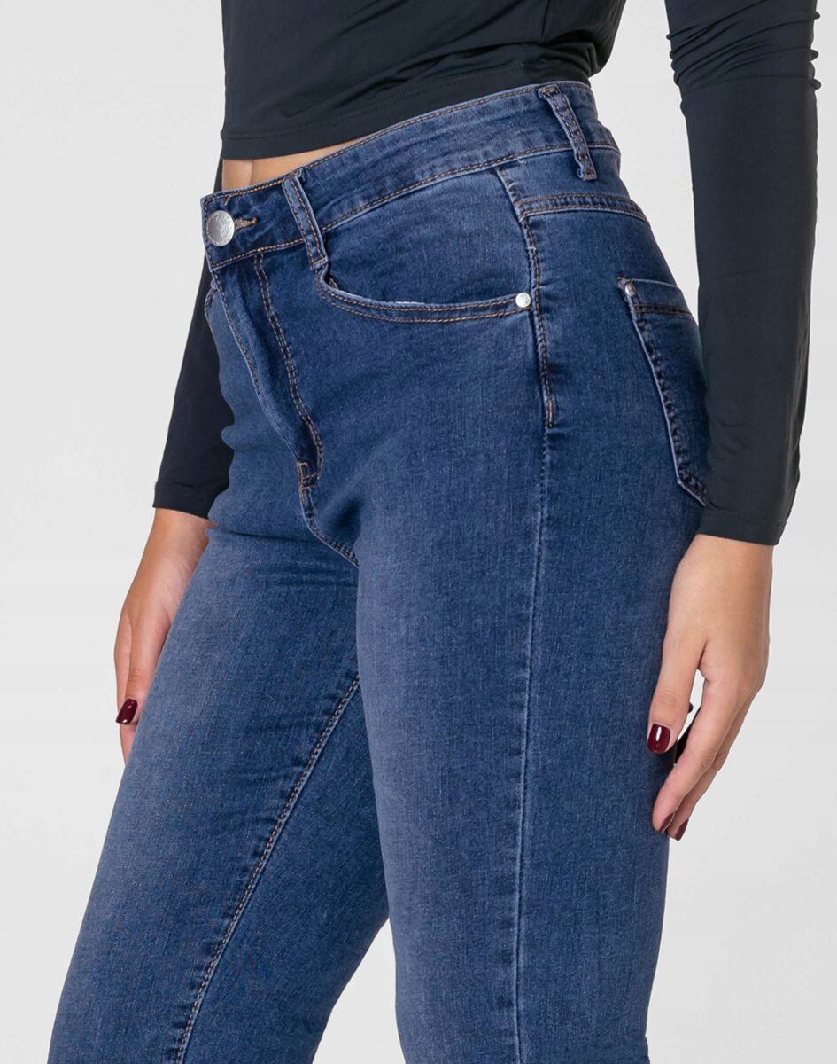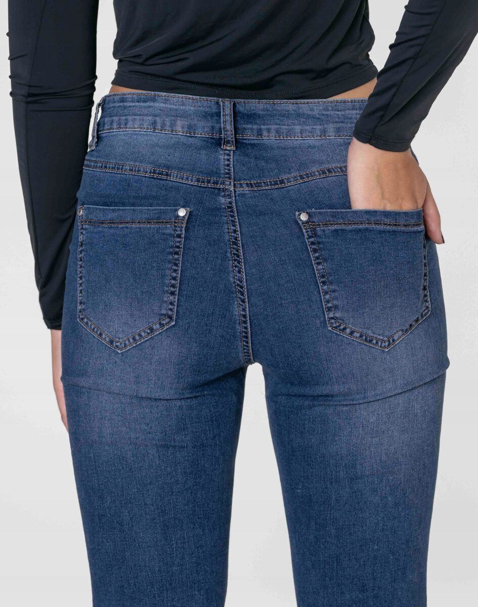 Oferowane przez nas spodnie uszyte są z wysokiej jakości, trwałej i mocnej, elastycznej tkaniny jeansowej „Light Blue Denim Jeans” z domieszką lycry (elastan). Niewielki dodatek lycry sprawia, że spodnie są bardziej elastyczne, ładnie dopasowują się do sylwetki i są bardzo komfortowe w użytkowaniu, a nogi wydają się się optycznie dłuższe. Krótsze nogawki 7/8 i delikatne przetarcia na spodniach nadają stylizacjom ciekawej nonszalancji i zadziorności. Łatwo się je zakłada i są znacznie wygodniejsze od jeansów, które lycry nie mają. Poza tym bawełna ma tendencję do kurczenia się w praniu, dlatego lycra sprawia, że spodnie są wyjątkowo praktyczne i można je bez problemu założyć po wysuszeniu. Pozwalają na pełną swobodę ruchów, co daje wygodę przy siadaniu i zapewnia ogromny komfort noszenia. Możesz je śmiało łączyć zarówno ze szpilkami (idealnie wydłużają kobiece nogi), jak i obuwiem sportowym lub czółenkami na wysokim obcasie, a Twoja stylizacja nabierze wyjątkowego charakteru. Zapewniają poczucie atrakcyjności przy jednoczesnym zachowaniu wygody i pełnej swobody ruchów.