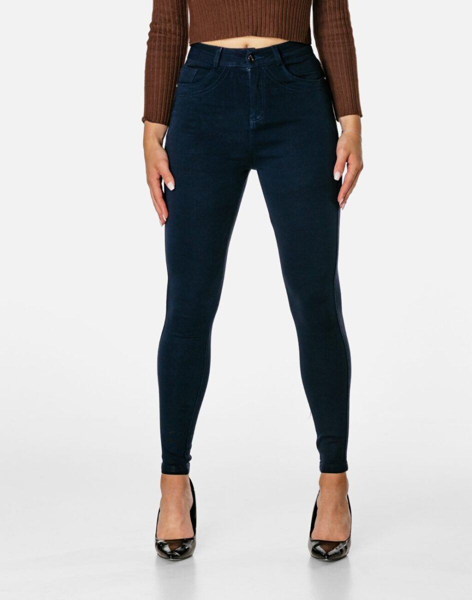 Granatowe Spodnie Rurki Damskie z Wyższym Stanem i Streczem
