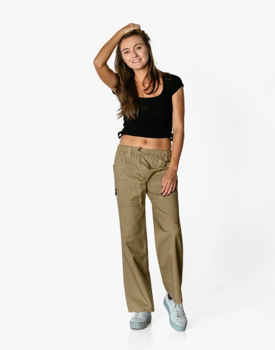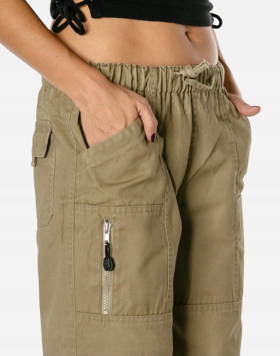 Z założenia wyróżniają się dużą wygodą, a dopasowanie w pasie zapewnia elastyczny pas ściągający oraz dodatkowo wpuszczona w pasek taśma z możliwością jej zawiązywania co umożliwia regulację i dopasowanie do indywidualnych preferencji. Model ten wyposażono w obszerne kieszenie z przodu i z tyłu , przez co są niezwykle funkcjonalne i praktyczne dodając im modnego i lekko militarystycznego charakteru. Nie musisz nosić z nimi torebki. Najpotrzebniejsze drobiazgi zmieścisz przy sobie.