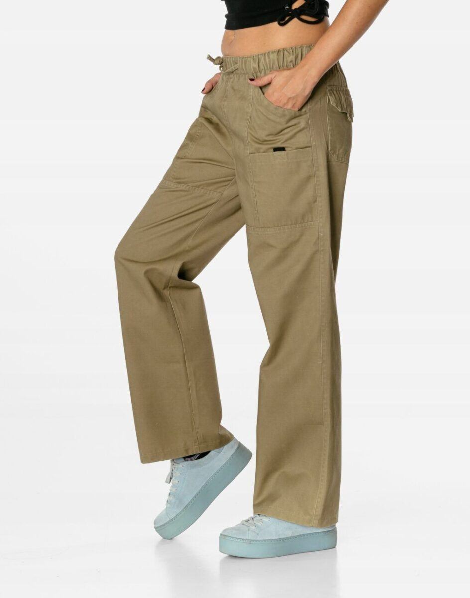 Z założenia wyróżniają się dużą wygodą, a dopasowanie w pasie zapewnia elastyczny pas ściągający oraz dodatkowo wpuszczona w pasek taśma z możliwością jej zawiązywania co umożliwia regulację i dopasowanie do indywidualnych preferencji. Model ten wyposażono w obszerne kieszenie z przodu i z tyłu , przez co są niezwykle funkcjonalne i praktyczne dodając im modnego i lekko militarystycznego charakteru. Nie musisz nosić z nimi torebki. Najpotrzebniejsze drobiazgi zmieścisz przy sobie.