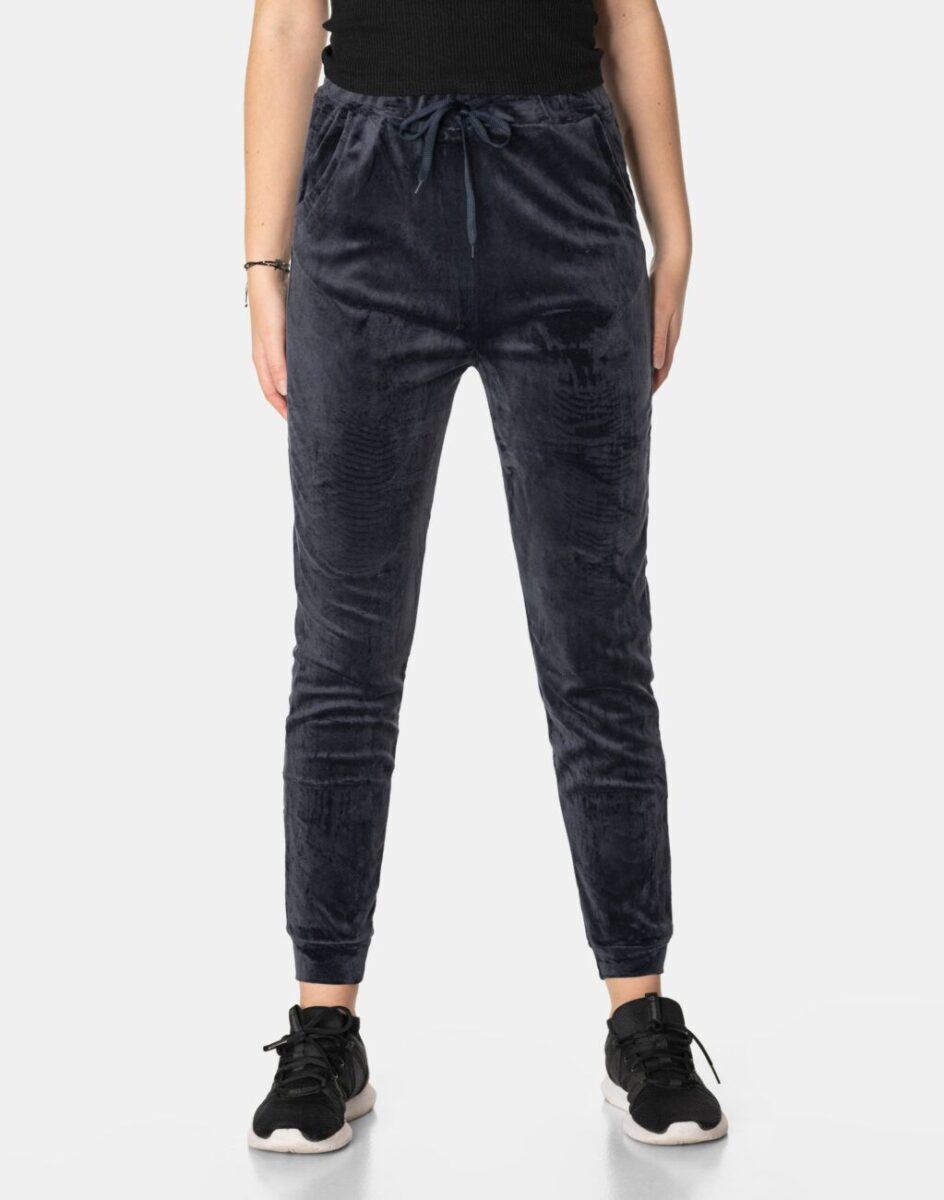 Spodnie sportowe damskie z puszystego weluru to wyjątkowo komfortowe, ciepłe, i bardzo praktyczne okrycie wierzchnie na sezon przejściowy i zimowy o szerokich możliwościach wykorzystania. Wykonane z miękkiej, przyjemnej w dotyku, ciepłej dzianiny welurowej z delikatnym włoskiem, dostosowanej do użytku w zmiennych warunkach i niskiej temperaturze, która zapewnia wysoki współczynnik ochrony termicznej w stosunku do wagi. To komfortowo skrojony model w stylu sport-casual z lekko zwężaną nogawką zakończoną ściągaczem. Z założenia wyróżniają się dużą wygodą a dopasowanie w pasie zapewnia szeroki, elastyczny pas ściągający zgrabnie modelujący sylwetkę w talii.