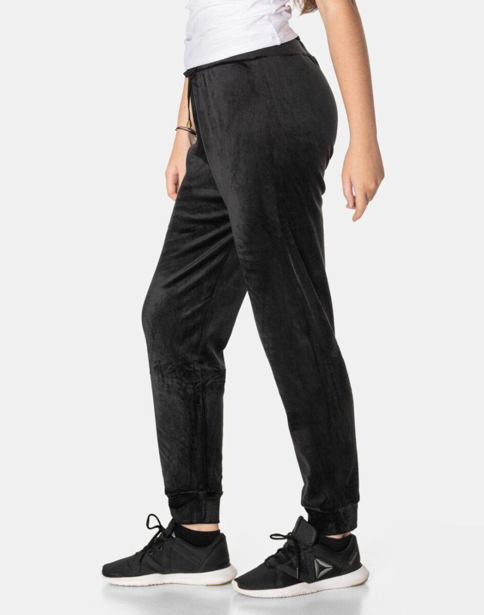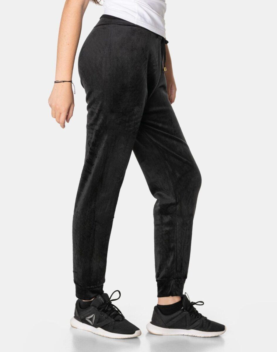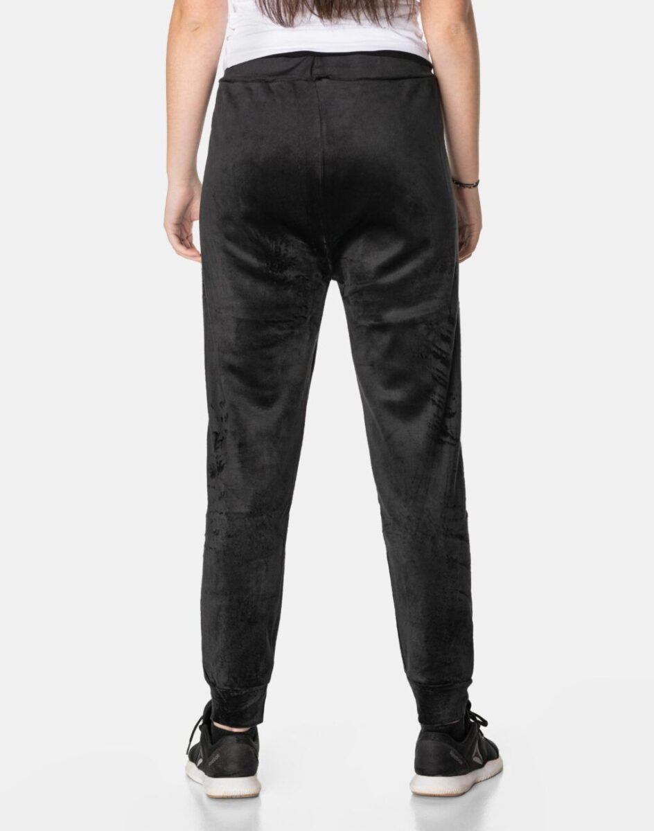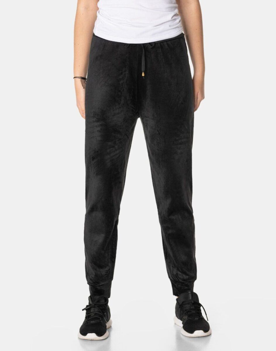 Spodnie sportowe damskie z puszystego weluru to wyjątkowo komfortowe, ciepłe, i bardzo praktyczne okrycie wierzchnie na sezon przejściowy i zimowy o szerokich możliwościach wykorzystania. Wykonane z miękkiej, przyjemnej w dotyku, ciepłej dzianiny welurowej z delikatnym włoskiem, dostosowanej do użytku w zmiennych warunkach i niskiej temperaturze, która zapewnia wysoki współczynnik ochrony termicznej w stosunku do wagi. To komfortowo skrojony model w stylu sport-casual z lekko zwężaną nogawką zakończoną ściągaczem. Z założenia wyróżniają się dużą wygodą a dopasowanie w pasie zapewnia szeroki, elastyczny pas ściągający zgrabnie modelujący sylwetkę w talii. Wewnętrzna strona spodni posiada wykończenie typu „MESCH” (fabrycznie wykończona jest miłym w dotyku i przyjemnym dla ciała meszkiem przypominającym futerko) zapewniające bardzo przyjemny kontakt ze skórą oraz komfort cieplny. Takie wykończenie wewnętrznej strony spodni zapewnia bardzo wysoki wskaźnik ochrony termicznej jak również zdecydowanie podnosi komfort użytkowania jesienią a zwłaszcza zimą.