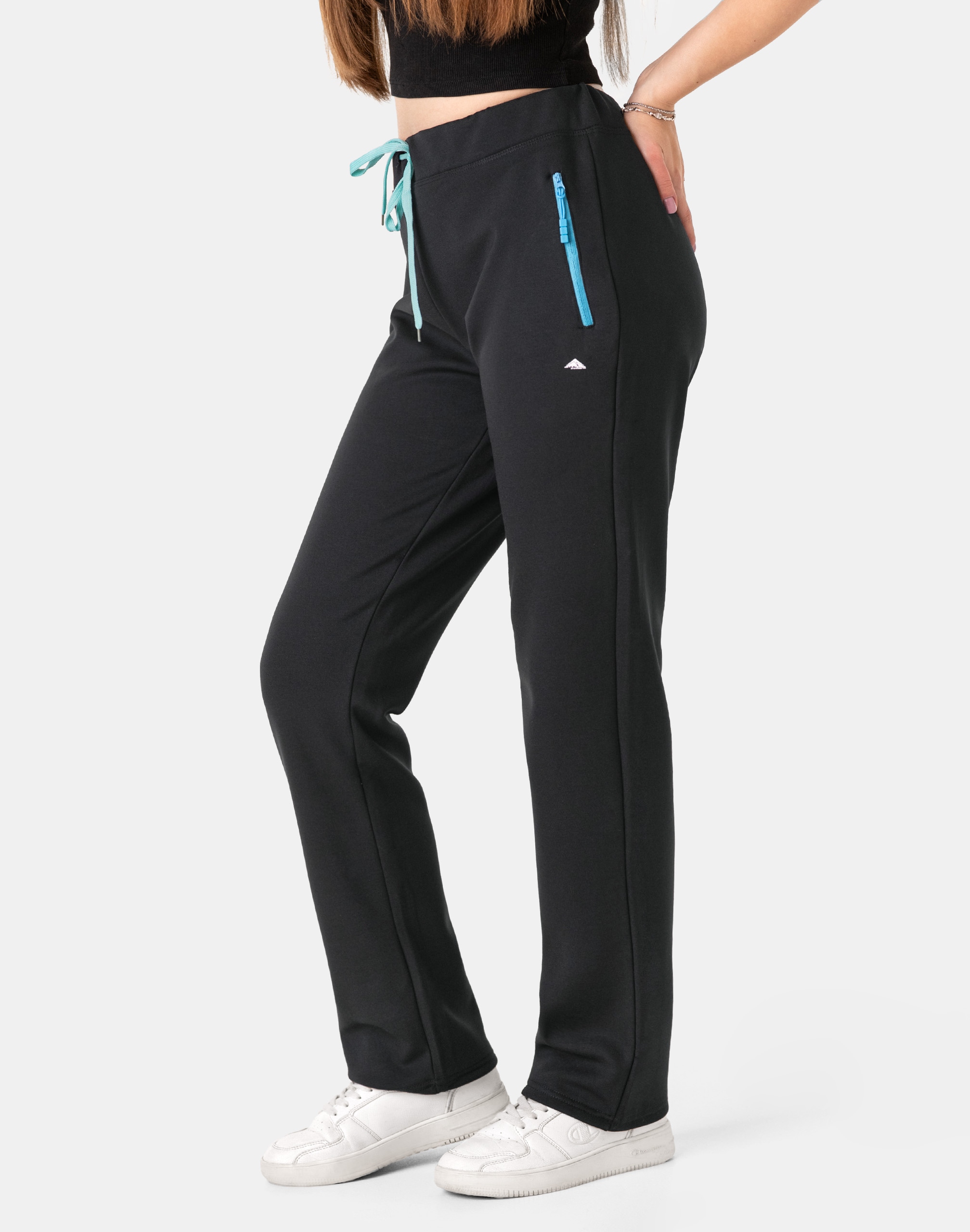 Ciepłe, ocieplane spodnie sportowe damskie z kolekcji Winter Sport są doskonałym wyborem dla kobiet aktywnych. Gładkie, dopasowane w biodrach, z wysoką elastyczną talią i klasyczną prostą nogawką REGULAR FIT i ozdobnymi, kolorowymi zamkami. Z założenia wyróżniają się dużą wygodą a dopasowanie w pasie zapewnia szeroki, elastyczny pas ściągający zgrabnie modelujący sylwetkę w talii, oraz dodatkowo wpuszczona w pasek taśma regulacyjna z możliwością jej zawiązywania. Materiał charakteryzuje się dużą elastycznością oraz rozciągliwością w czterech kierunkach a dodatkowa wewnętrzna warstwa z ciepłego mikropolaru zapewnia świetną ochronę przed chłodem, wiatrem i wilgocią nawet w trudnych warunkach pogodowych. Na bokach spodni dwie wpuszczane kieszenie na dłonie zasuwane na kolorowe zamki błyskawiczne, tył gładki bez kieszeni. Trwałe i elastyczne wykończenie spodni (użycie do produkcji elastycznych nici) gwarantuje komfort i wygodę ich użytkowania. Ergonomiczny krój spodni nie ogranicza swobody ruchów a właściwe dla termicznej odzieży sportowej proporcje surowcowe wpływają pozytywnie na komfort użytkowania. Sylwetka użytkownika staje się w nich optycznie smuklejsza i nabiera dynamicznego sportowego wyglądu.