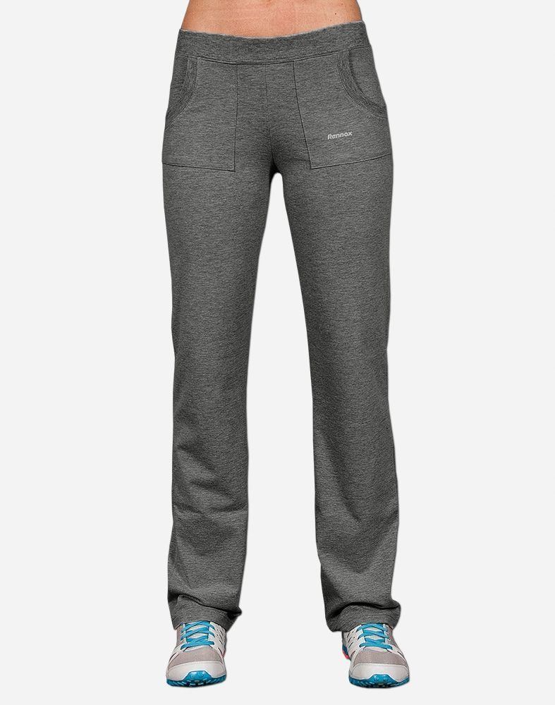 Sportowe spodnie damskie Rennox model 101 to komfortowo skrojony model z klasycznymi prostymi nogawkami. Z założenia wyróżniają się dużą wygodą, dopasowanie w pasie zapewnia szeroki, elastyczny pas ściągający. Na bokach dwie naszywane kieszenie na dłonie. Tył gładki bez kieszeni. Zawsze modna i wygodna klasyczna prosta nogawka.