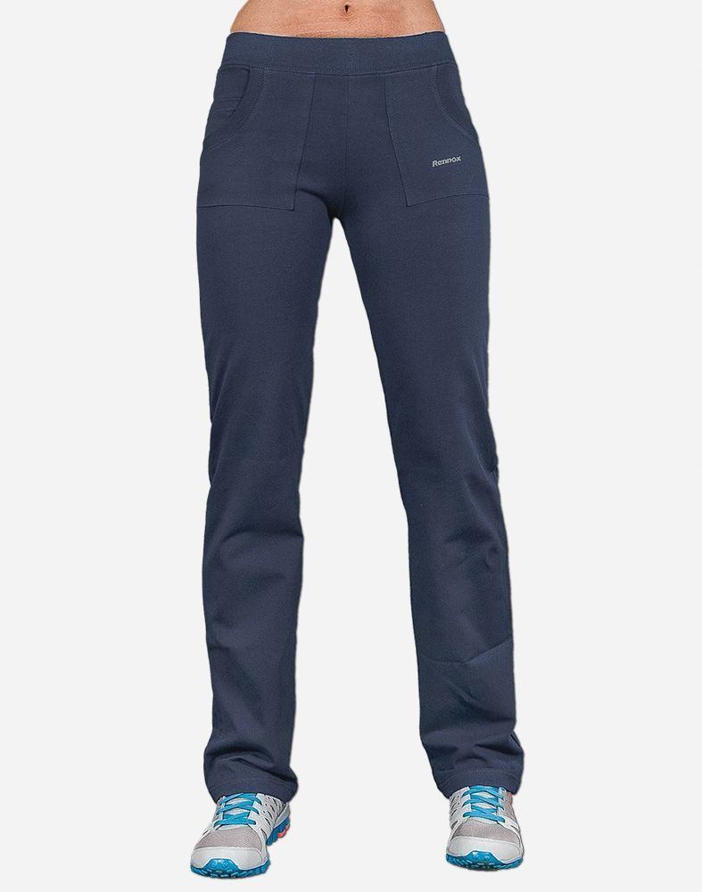 Sportowe spodnie damskie Rennox model 107 to komfortowo skrojony model z klasycznymi prostymi nogawkami. Z założenia wyróżniają się dużą wygodą, dopasowanie w pasie zapewnia szeroki, elastyczny pas ściągający. Na bokach dwie naszywane kieszenie na dłonie. Tył gładki bez kieszeni. Zawsze modna i wygodna klasyczna prosta nogawka.