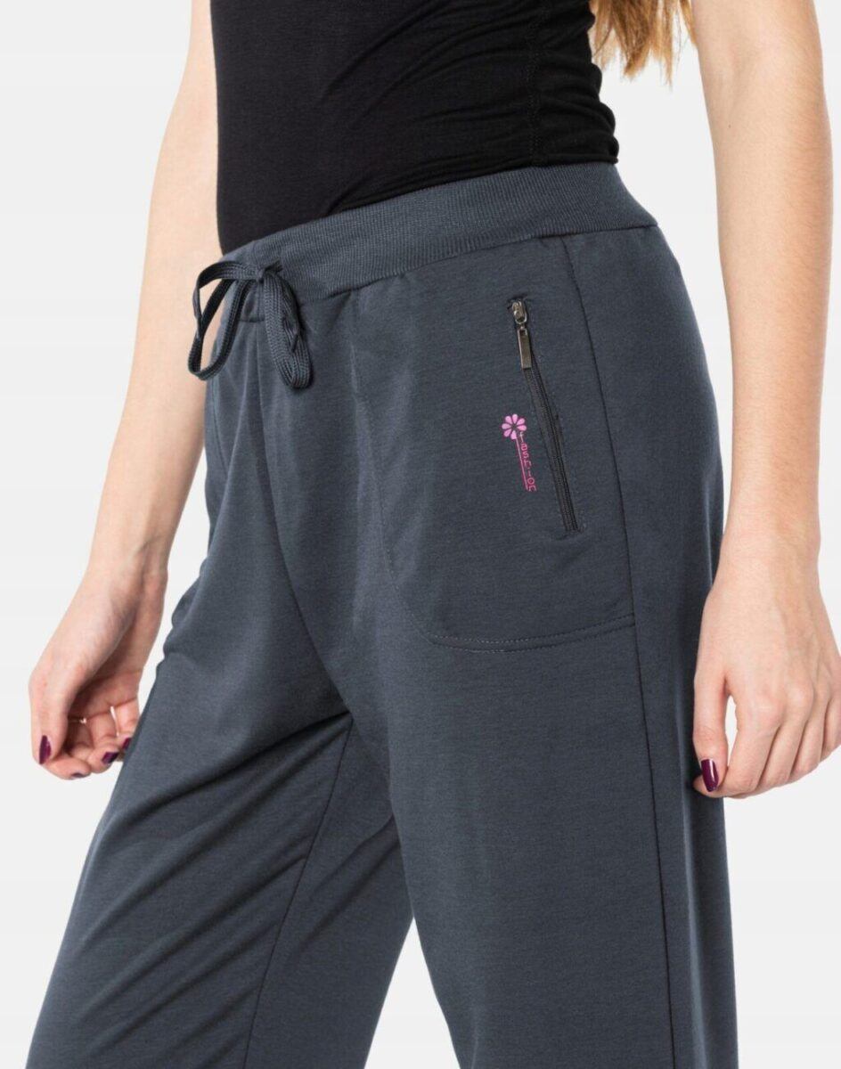 Spodnie sportowe damskie 514 to komfortowo skrojony model w stylu sport-casual z prostymi, klasycznymi nogawkami. Z założenia wyróżniają się dużą wygodą a dopasowanie w pasie zapewnia szeroki, elastyczny pas ściągający oraz dodatkowo wpuszczona w pasek taśma regulacyjna z możliwością jej zawiązywania. Na bokach spodni znajdują się dwie wpuszczane kieszenie na dłonie zasuwane na zamki błyskawiczne. Ergonomiczny krój spodni nie ogranicza swobody ruchów a właściwe dla odzieży sportowej proporcje surowcowe i niewielka gramatura wpływają pozytywnie na komfort użytkowania. Sylwetka użytkownika staje się w nich optycznie smuklejsza i nabiera dynamicznego sportowego wyglądu.