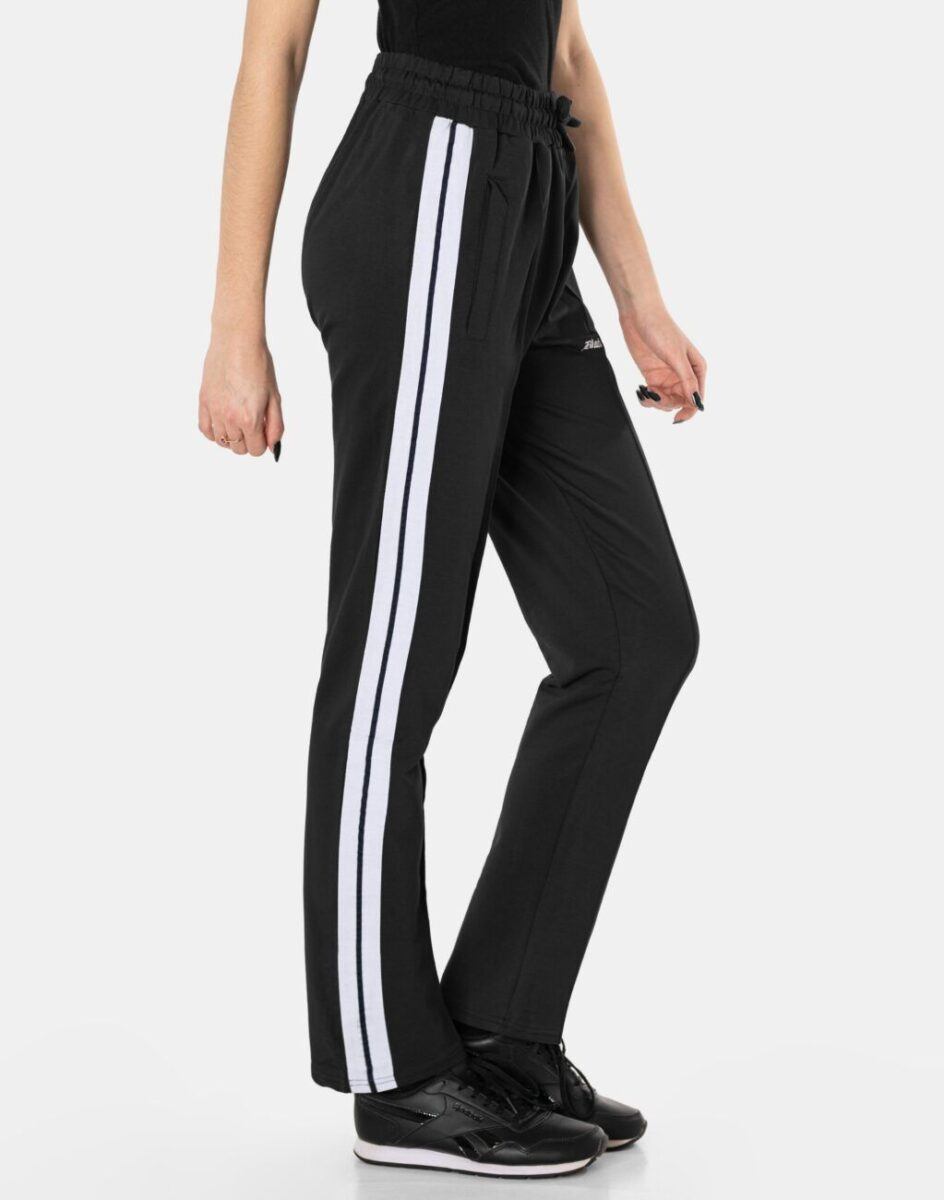 Spodnie sportowe damskie 657 to komfortowo skrojony model w stylu sport-casual z prostymi, klasycznymi nogawkami ozdobionymi lampasami co nadaje im wyjątkowego charakteru i ożywia sportowy look. Z założenia wyróżniają się dużą wygodą a dopasowanie w pasie zapewnia szeroki, elastyczny pas ściągający oraz dodatkowo wpuszczona w pasek taśma regulacyjna z możliwością jej zawiązywania. Na bokach spodni znajdują się dwie wpuszczane kieszenie na dłonie. Ergonomiczny krój spodni nie ogranicza swobody ruchów a właściwe dla odzieży sportowej proporcje surowcowe i niewielka gramatura wpływają pozytywnie na komfort użytkowania. Sylwetka użytkownika staje się w nich optycznie smuklejsza i nabiera dynamicznego sportowego wyglądu.