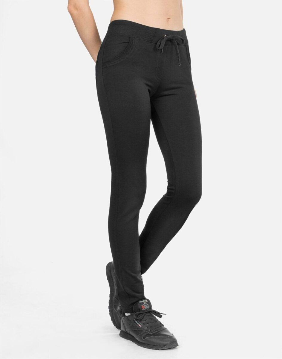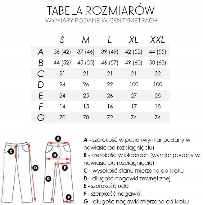Zastosowany materiał (dzianina dwułożyskowa pentelkowana od spodu o gramaturze 260g/m2) jest oddychający, odporny na promieniowanie UV, elastyczny, rozciągliwy w czterech kierunkach, idealnie dopasowuje się i jest bardzo komfortowy. Przyjemny w dotyku, nie prześwituje, jest odporny na zmechacenie a dzięki silikonowaniu włókien w procesie produkcji idealnie gładki. Spodnie nie uciskają i nie ograniczają ruchów. Trwałe i elastyczne wykończenie spodni (użycie do produkcji elastycznych nici) gwarantuje komfort i wygodę ich użytkownikowi w każdych warunkach. Możesz w nich chodzić na co dzień, idealnie nadają się również do uprawiania różnych dyscyplin sportu i rekreacji. Doskonale sprawdzą się zarówno na wycieczkach, spacerach, zajęciach w klubach fitness i na siłowni, podczas joggingu w parku, jak i w domowym zaciszu przy telewizorze.