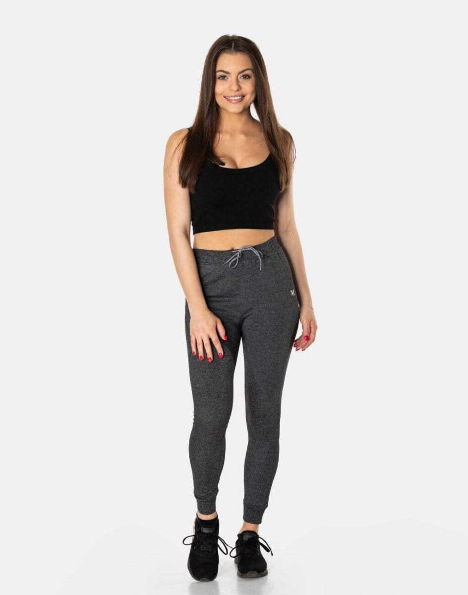 Spodnie sportowe damskie BENTER 46024 z kolekcji Fitness&Sport są doskonałym wyborem dla kobiet aktywnych. To komfortowo skrojony model w stylu sport-casual z wąskimi nogawkami zakończonymi elastycznym ściągaczem. Z założenia wyróżniają się dużą wygodą a dopasowanie w pasie zapewnia szeroki, elastyczny pas ściągający oraz dodatkowo wpuszczona w pasek taśma regulacyjna z możliwością jej zawiązywania. Na bokach spodni znajdują się dwie wpuszczane kieszenie na dłonie. Ergonomiczny krój spodni nie ogranicza swobody ruchów a właściwe dla odzieży sportowej proporcje surowcowe i niewielka gramatura wpływają pozytywnie na komfort użytkowania. Sylwetka użytkownika staje się w nich optycznie smuklejsza i nabiera dynamicznego sportowego wyglądu.