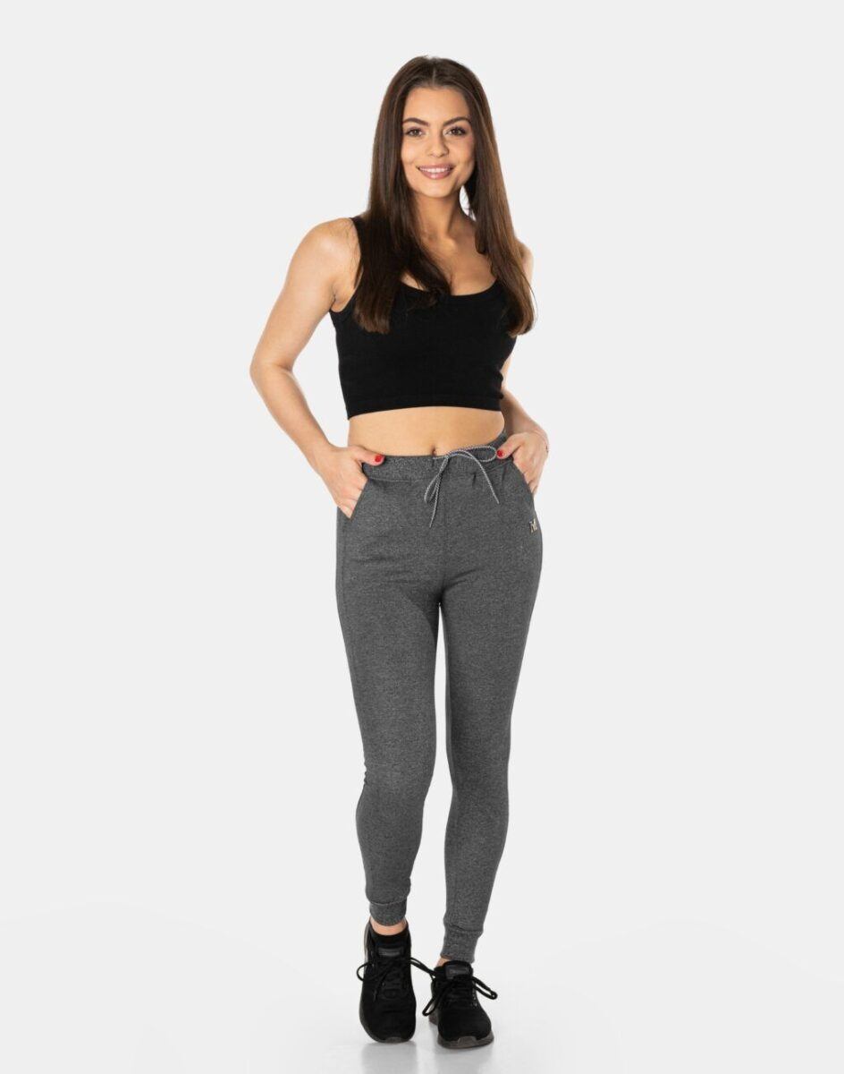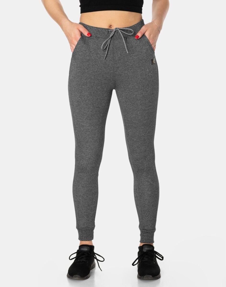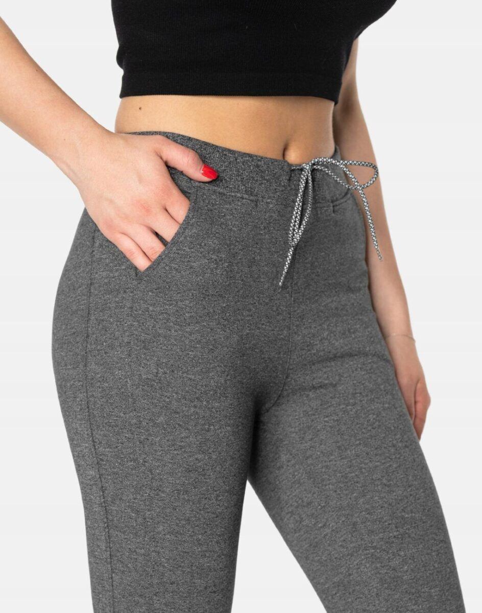 Spodnie sportowe damskie BENTER 46024 z kolekcji Fitness&Sport są doskonałym wyborem dla kobiet aktywnych. To komfortowo skrojony model w stylu sport-casual z wąskimi nogawkami zakończonymi elastycznym ściągaczem. Z założenia wyróżniają się dużą wygodą a dopasowanie w pasie zapewnia szeroki, elastyczny pas ściągający oraz dodatkowo wpuszczona w pasek taśma regulacyjna z możliwością jej zawiązywania. Na bokach spodni znajdują się dwie wpuszczane kieszenie na dłonie. Ergonomiczny krój spodni nie ogranicza swobody ruchów a właściwe dla odzieży sportowej proporcje surowcowe i niewielka gramatura wpływają pozytywnie na komfort użytkowania. Sylwetka użytkownika staje się w nich optycznie smuklejsza i nabiera dynamicznego sportowego wyglądu.
