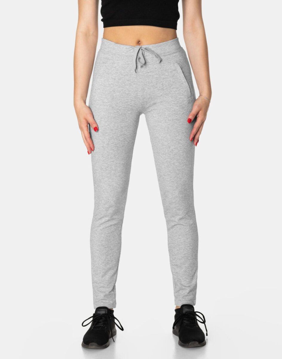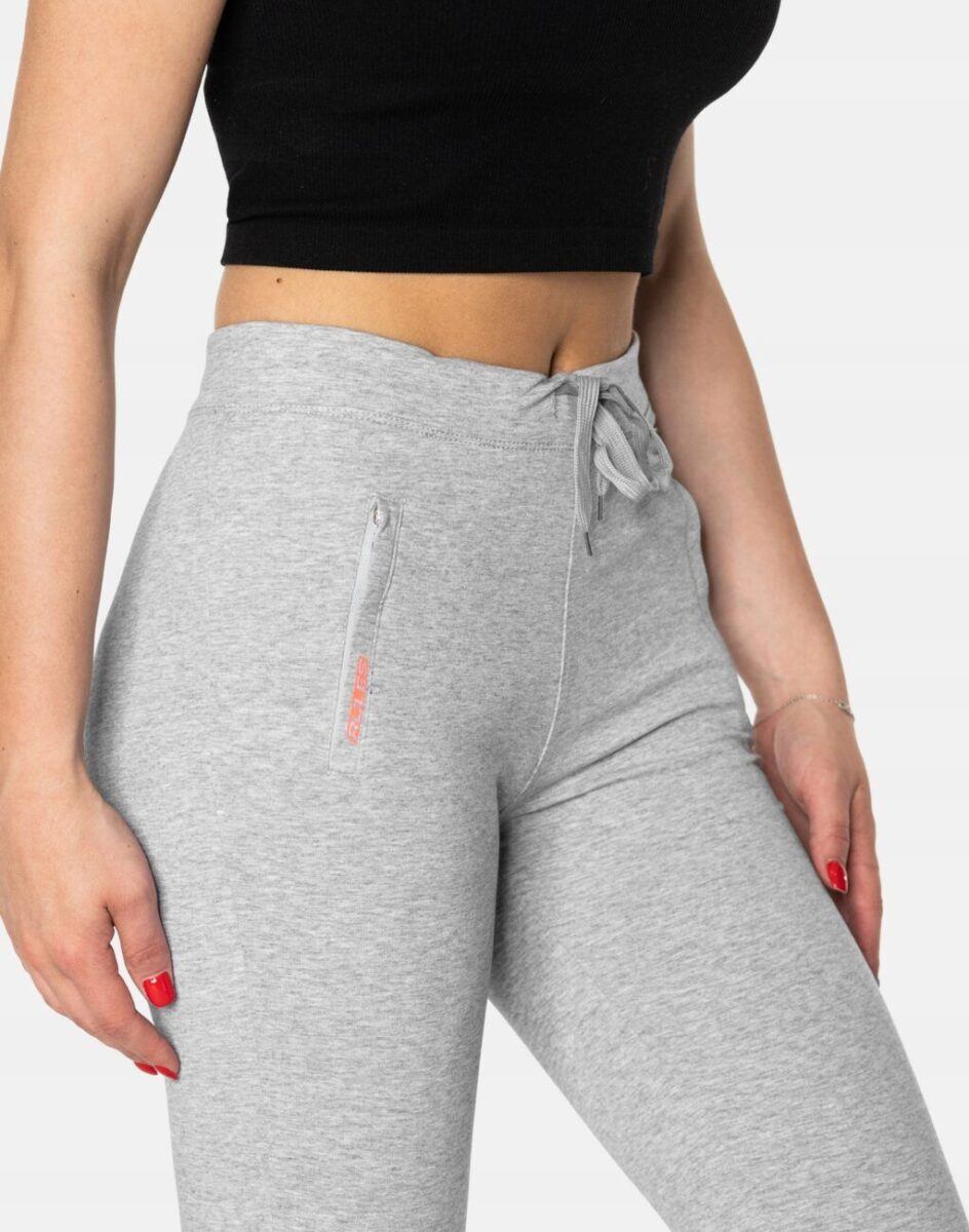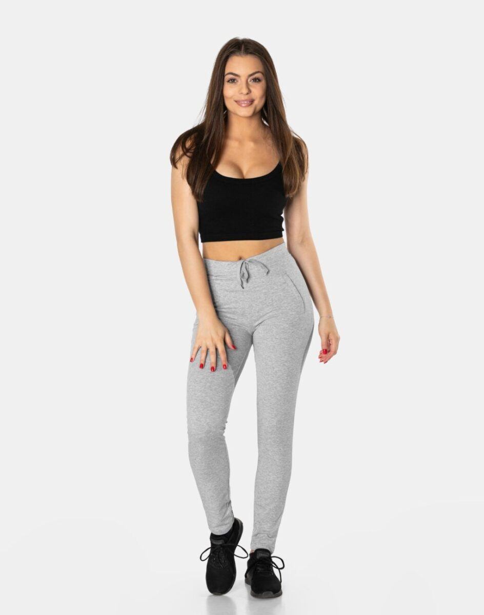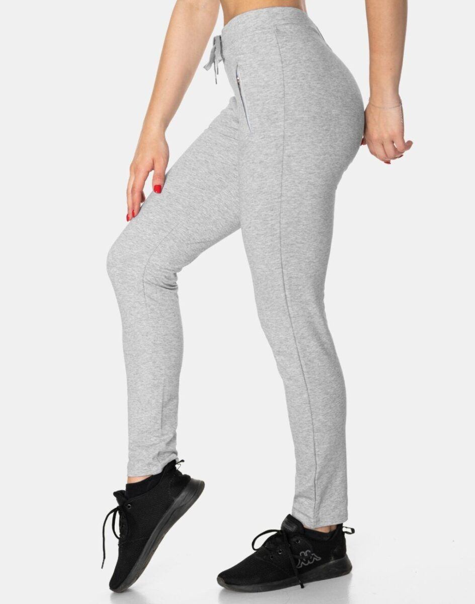 Spodnie sportowe damskie BENTER 46983 z kolekcji Fitness&Sport są doskonałym wyborem dla kobiet aktywnych. To komfortowo skrojony model w stylu sport-casual z wąskimi nogawkami. Z założenia wyróżniają się dużą wygodą a dopasowanie w pasie zapewnia szeroki, elastyczny pas ściągający oraz dodatkowo wpuszczona w pasek taśma regulacyjna z możliwością jej zawiązywania. Na bokach spodni znajdują się dwie wpuszczane kieszenie na dłonie, zasuwane za zamki błyskawiczne. Ergonomiczny krój spodni nie ogranicza swobody ruchów a właściwe dla odzieży sportowej proporcje surowcowe i niewielka gramatura wpływają pozytywnie na komfort użytkowania. Sylwetka użytkownika staje się w nich optycznie smuklejsza i nabiera dynamicznego sportowego wyglądu.