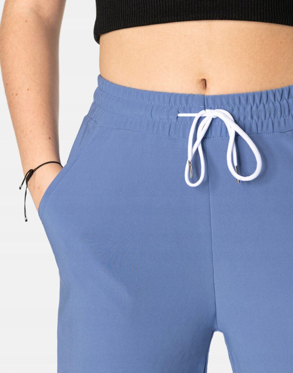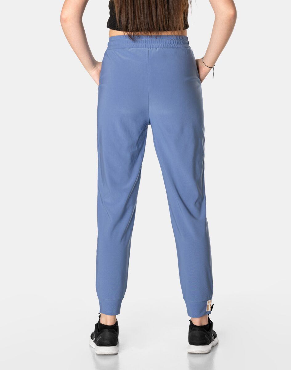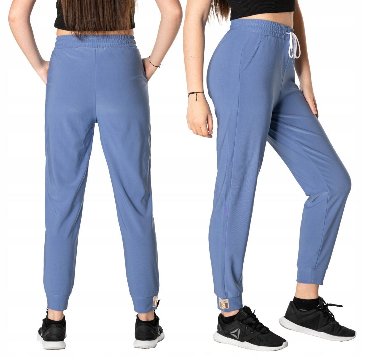 Spodnie sportowe damskie 99162 to komfortowo skrojony model w stylu sport-casual z podwyższoną elastyczną talią i zwężającymi się nogawkami zakończonymi ściągaczem. Z założenia wyróżniają się dużą wygodą a dopasowanie w pasie zapewnia szeroki, elastyczny pas ściągający zgrabnie modelujący talię, oraz dodatkowo wpuszczona w pasek taśma regulacyjna z możliwością jej zawiązywania. Z przodu dwie wpuszczane kieszenie na dłonie, tył gładki bez kieszeni. Ergonomiczny krój spodni nie ogranicza swobody ruchów a właściwe dla odzieży sportowej proporcje surowcowe i niewielka gramatura wpływają pozytywnie na komfort użytkowania. Sylwetka użytkownika staje się w nich optycznie smuklejsza i nabiera dynamicznego sportowego wyglądu.