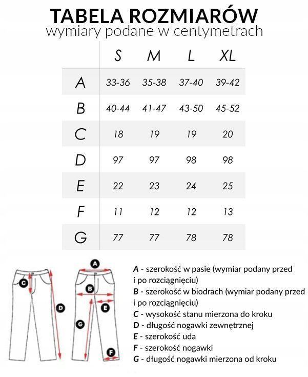 Oferowane przez nas spodnie uszyte są wysokiej jakości tkaniny będącej unikalnym połączeniem Rayonu (sztuczny jedwab) z domieszką Nylonu oraz lycry (Spandex), dzięki czemu są bardziej elastyczne i bardzo dobrze dopasowują się do każdej sylwetki. Pozwalają na pełną swobodę ruchów, co daje komfort przy siadaniu i zapewnia ogromny komfort noszenia.