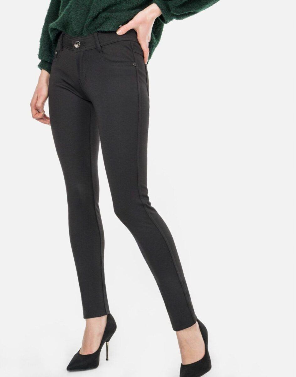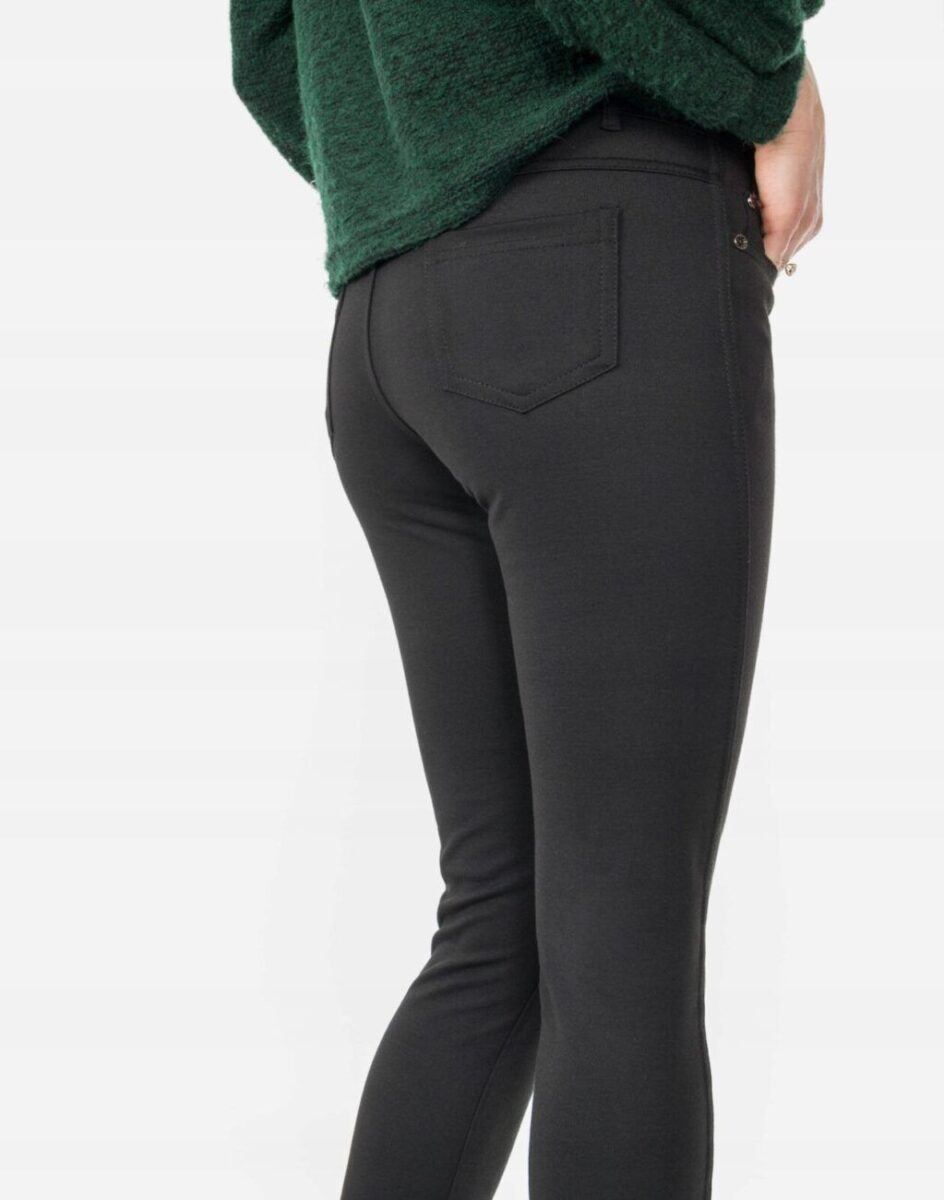 Klasyczne, a jednocześnie zawsze nowoczesne, urzekają minimalistycznym wzornictwem. Elegancki czarny kolor, zawsze modny krój z wąską nogawką i wyższym stanem pozwoli Ci założyć je na wiele różnych okazji. Uniwersalny fason tych spodni sprawi, że w zależności od dopasowanego do nich elementu garderoby, będziesz zawsze odpowiednio ubrana na każdą okazję, zarówno na „sportowo” jak i na „elegancko”. Możesz je łączyć zarówno ze szpilkami, jak i obuwiem sportowym.