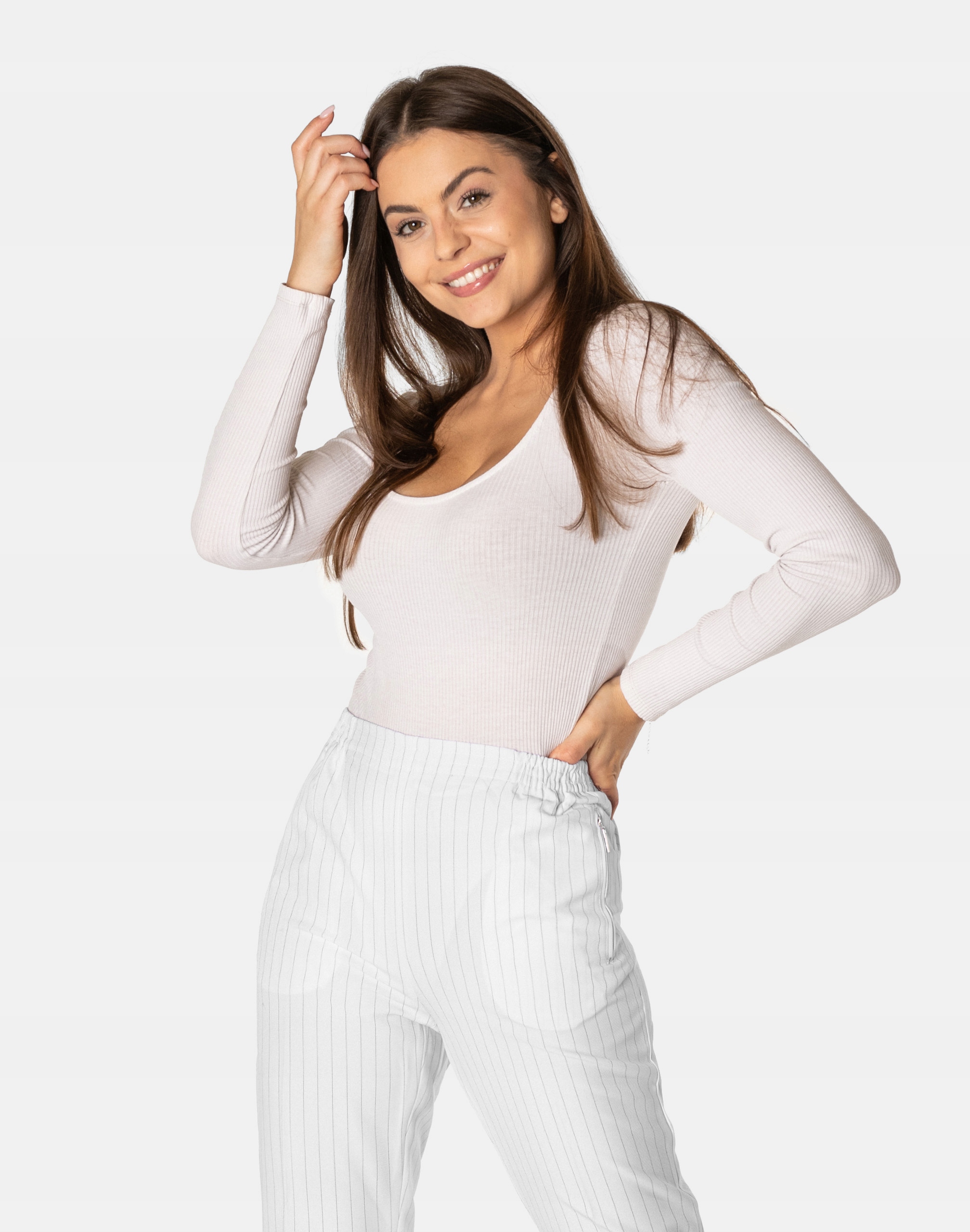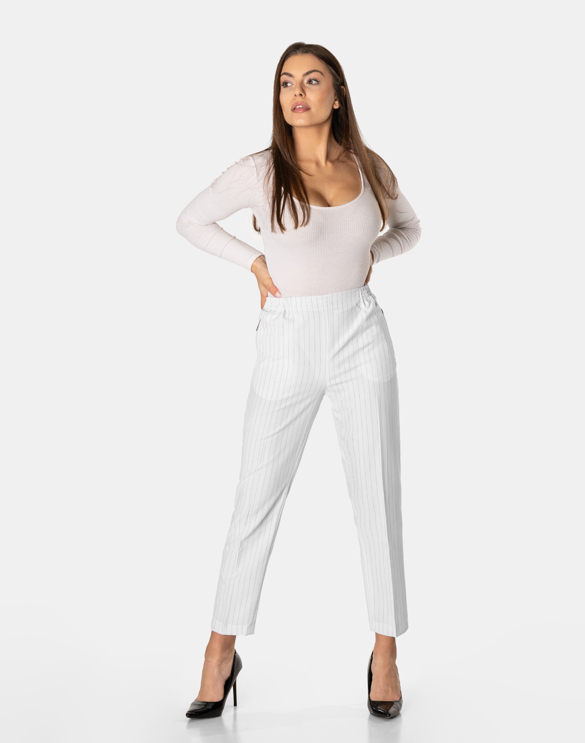 Wykonane z wysokiej jakości cienkiej tkaniny z dodatkiem wiskozy, dzięki czemu spodnie są lekkie, przewiewne, bardzo dobrze się układają i dopasowują do każdej figury. Pozwalają na pełną swobodę ruchów co daje komfort przy siadaniu i zapewnia ogromny komfort noszenia. Trwałe i elastyczne wykończenie spodni (użycie do produkcji elastycznych nici) gwarantuje komfort i wygodę ich użytkownikowi w każdych warunkach.