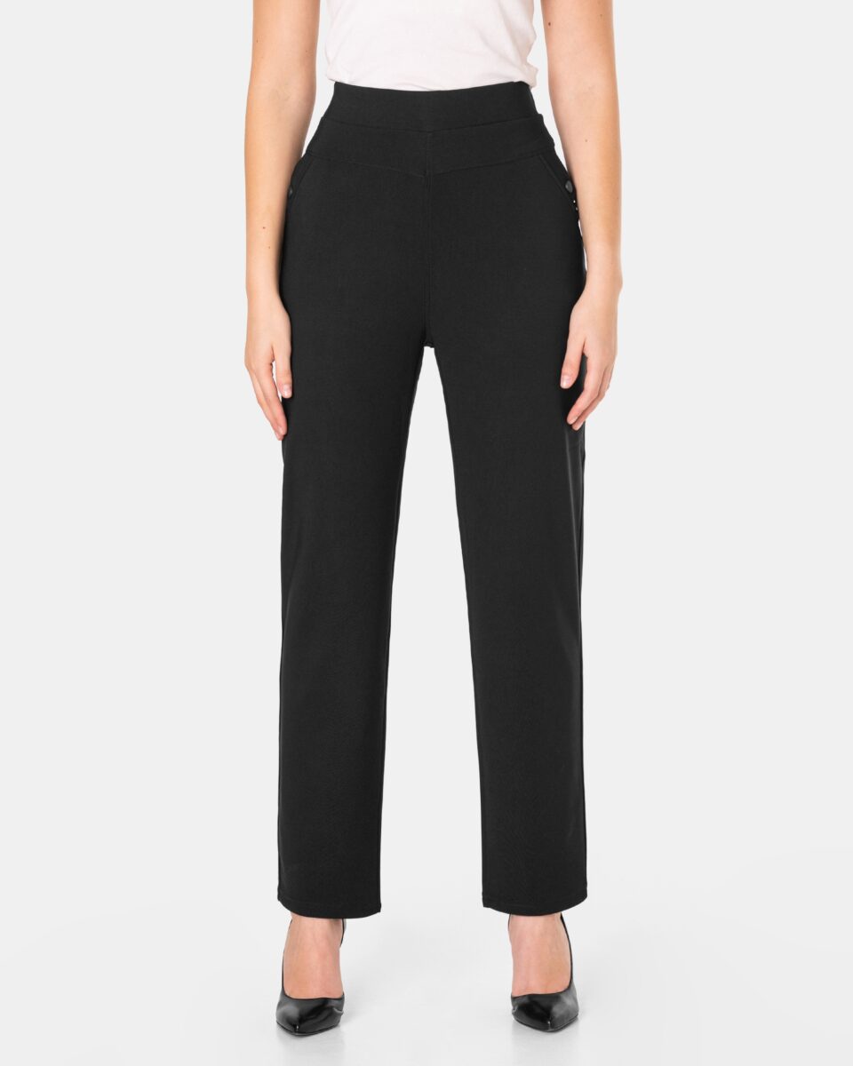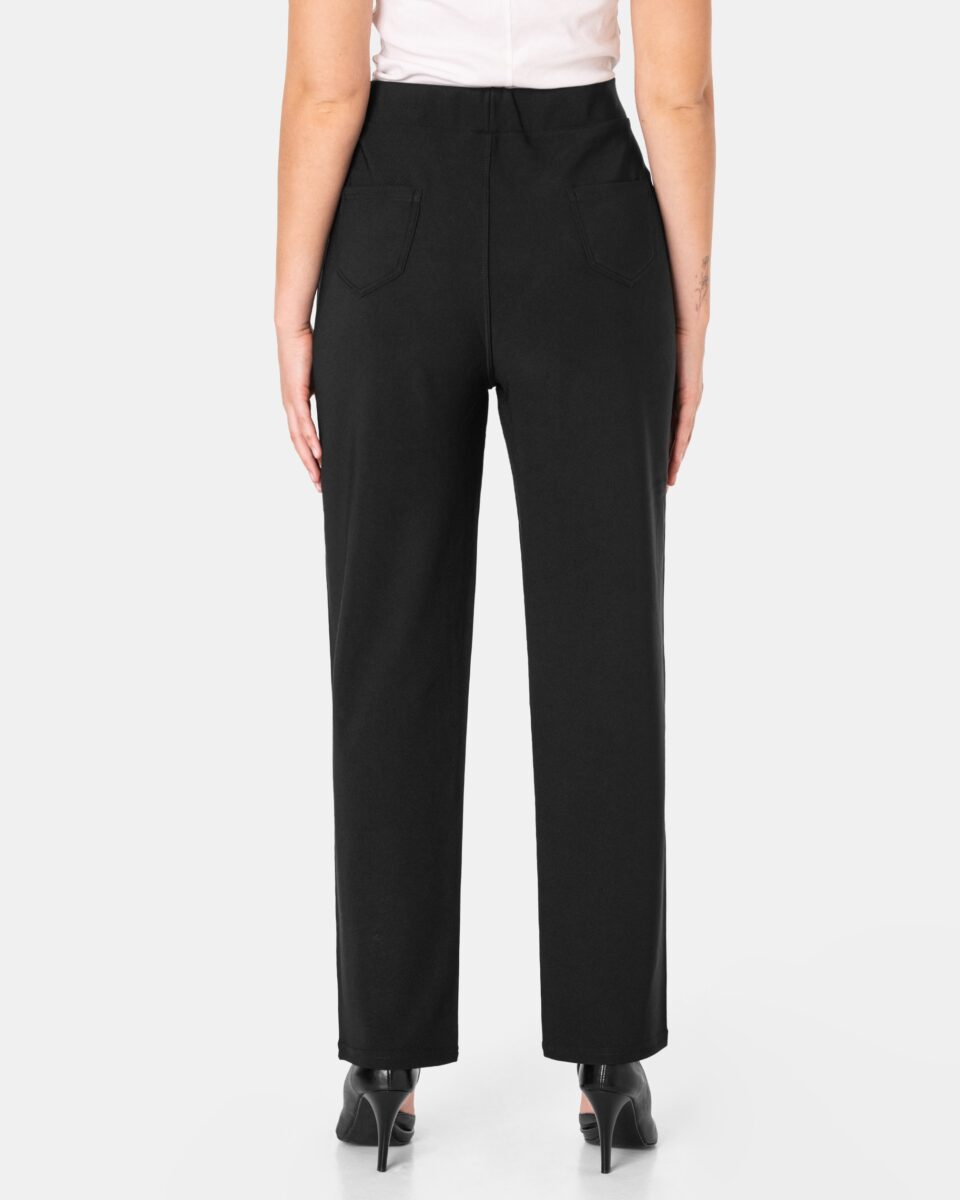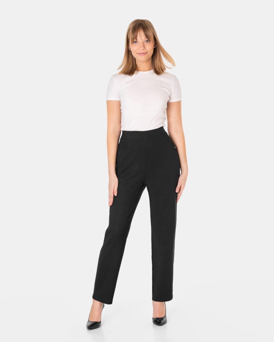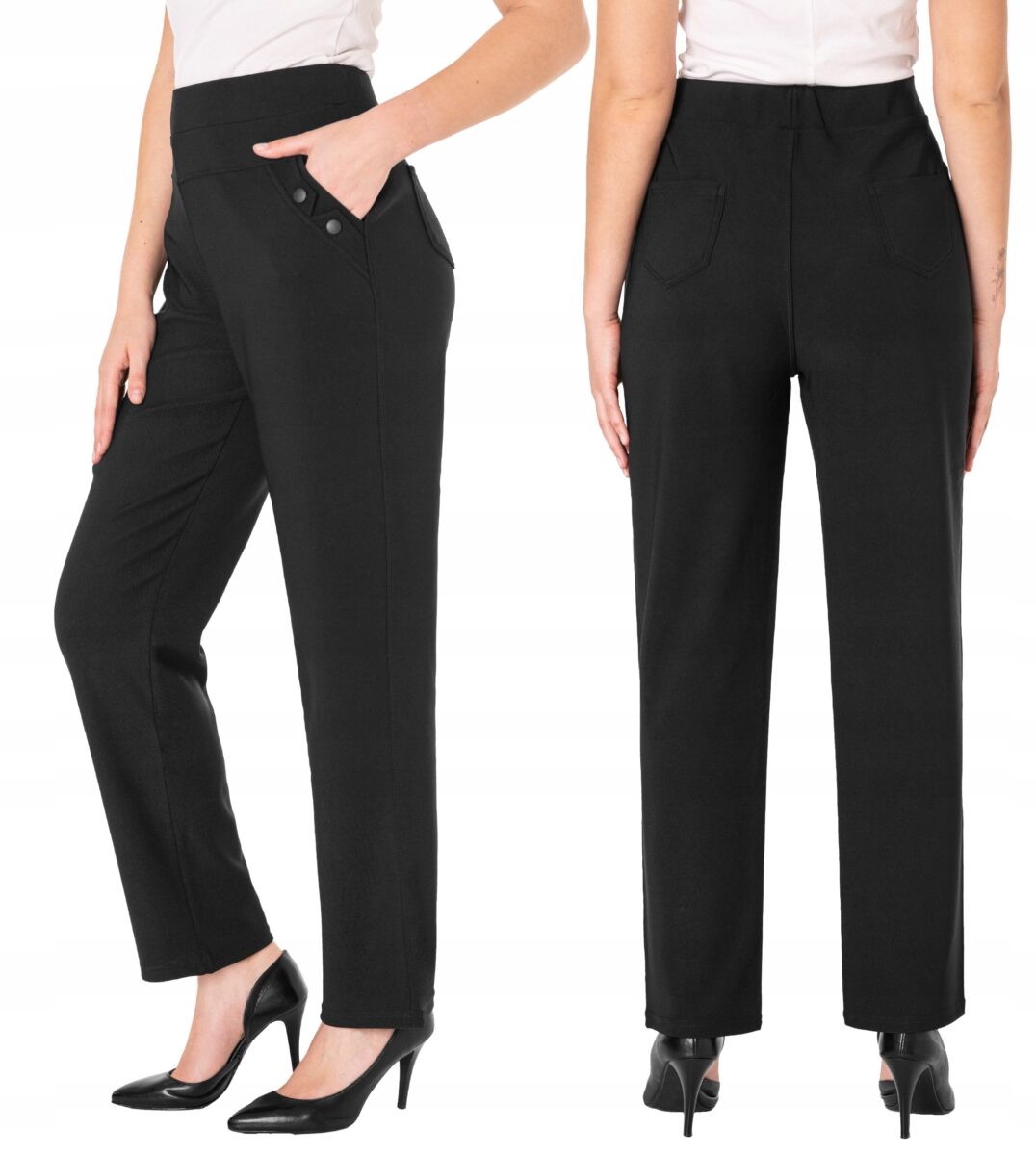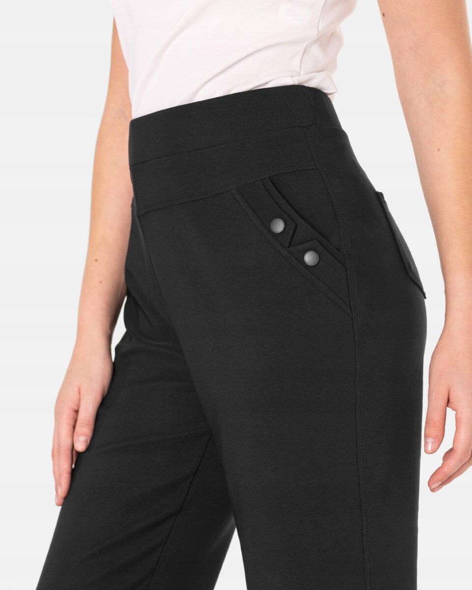 Wykonane z wysokiej jakości dzianiny średniej grubości z dodatkiem spandexu (lycra) dzięki czemu spodnie są bardziej elastyczne, bardzo dobrze się układają i dopasowują do każdej figury. Pozwalają na pełną swobodę ruchów co daje komfort przy siadaniu i zapewnia ogromny komfort noszenia. Trwałe i elastyczne wykończenie spodni (użycie do produkcji elastycznych nici) gwarantuje komfort i wygodę ich użytkownikowi w każdych warunkach, a tkanina jest na tyle gruba, że nie widać przez nią bielizny. Sprawdzony przez wiele zadowolonych klientek uniwersalny i modny krój typu cygaretki z lekko zwężoną nogawką i wyższym stanem, które założysz na wiele różnych okazji. Ten prosty fason prezentuje się bardzo dobrze na wielu sylwetkach, dodając im lekkości (wystarczy do stroju dołożyć szpilki) i wysmuklając linię. Zbudujesz z nimi wiele zestawów, które będą wyglądały profesjonalnie i jednocześnie bardzo stylowo.