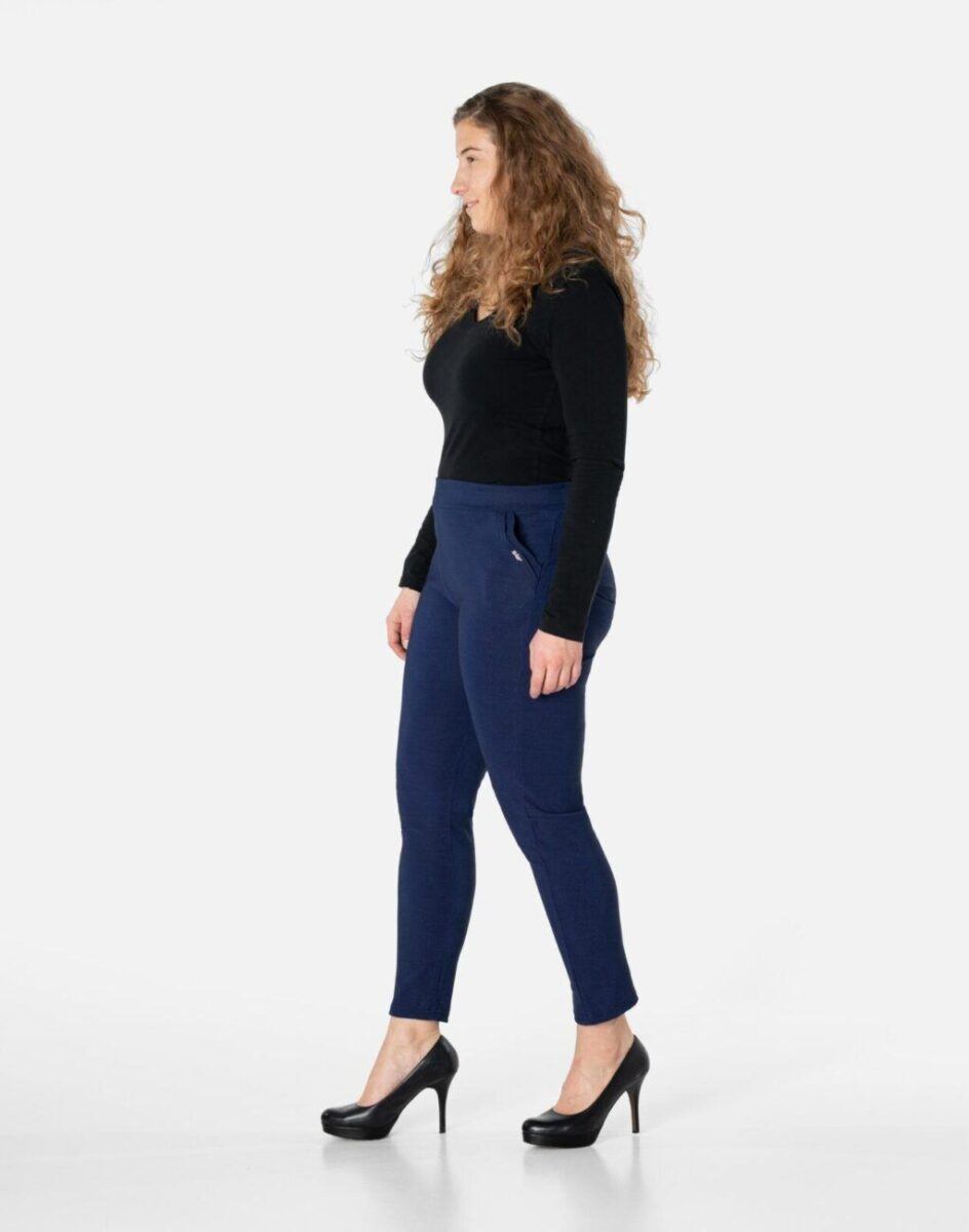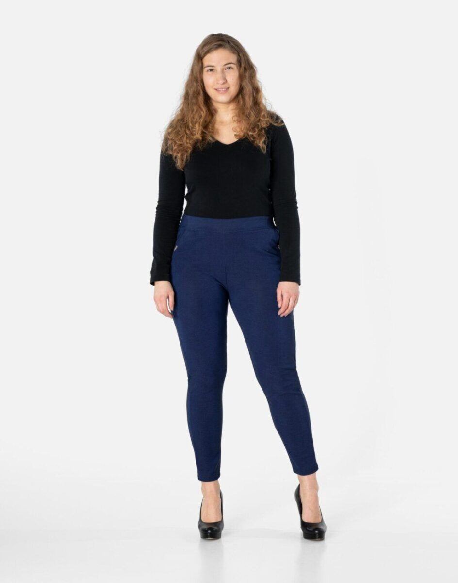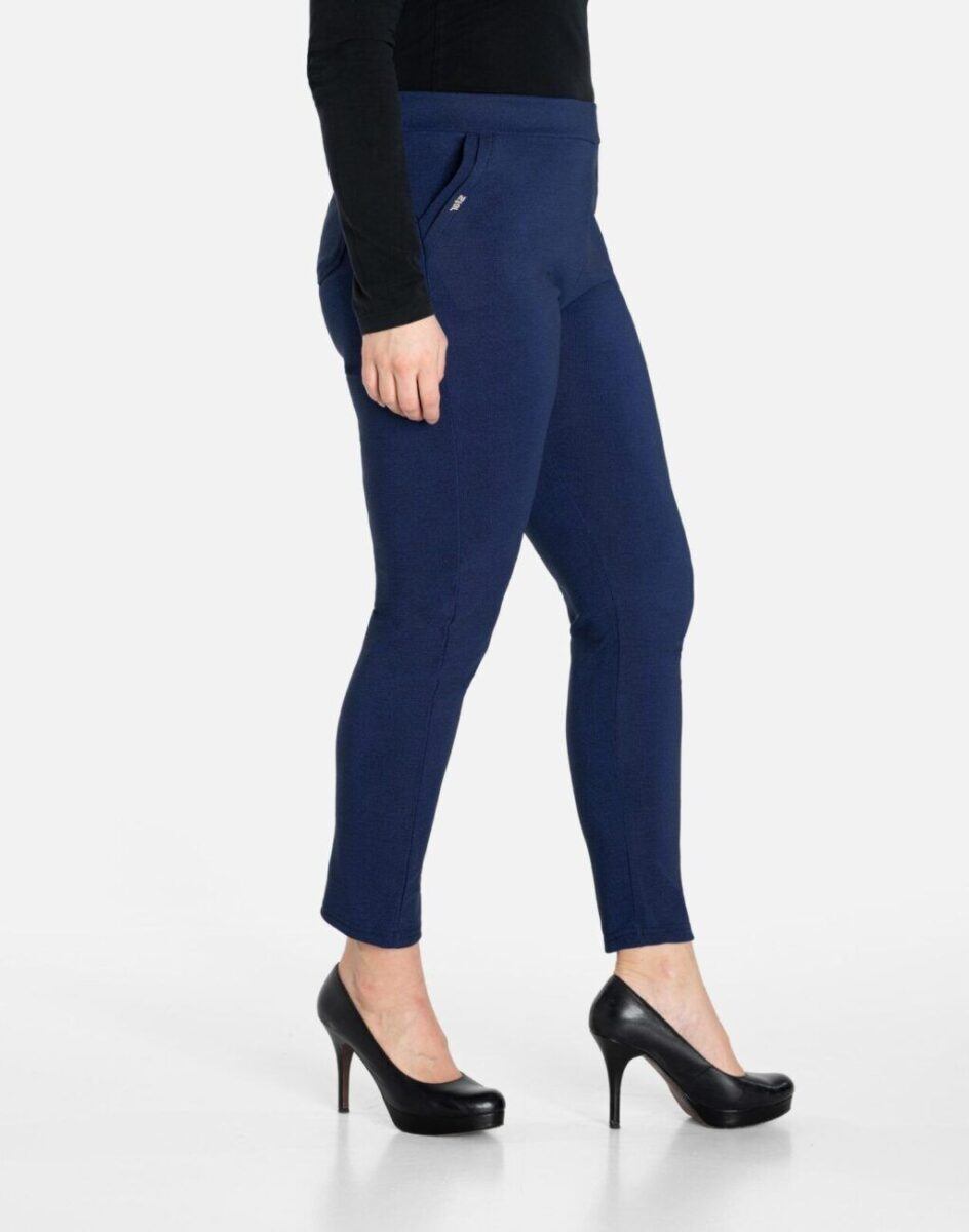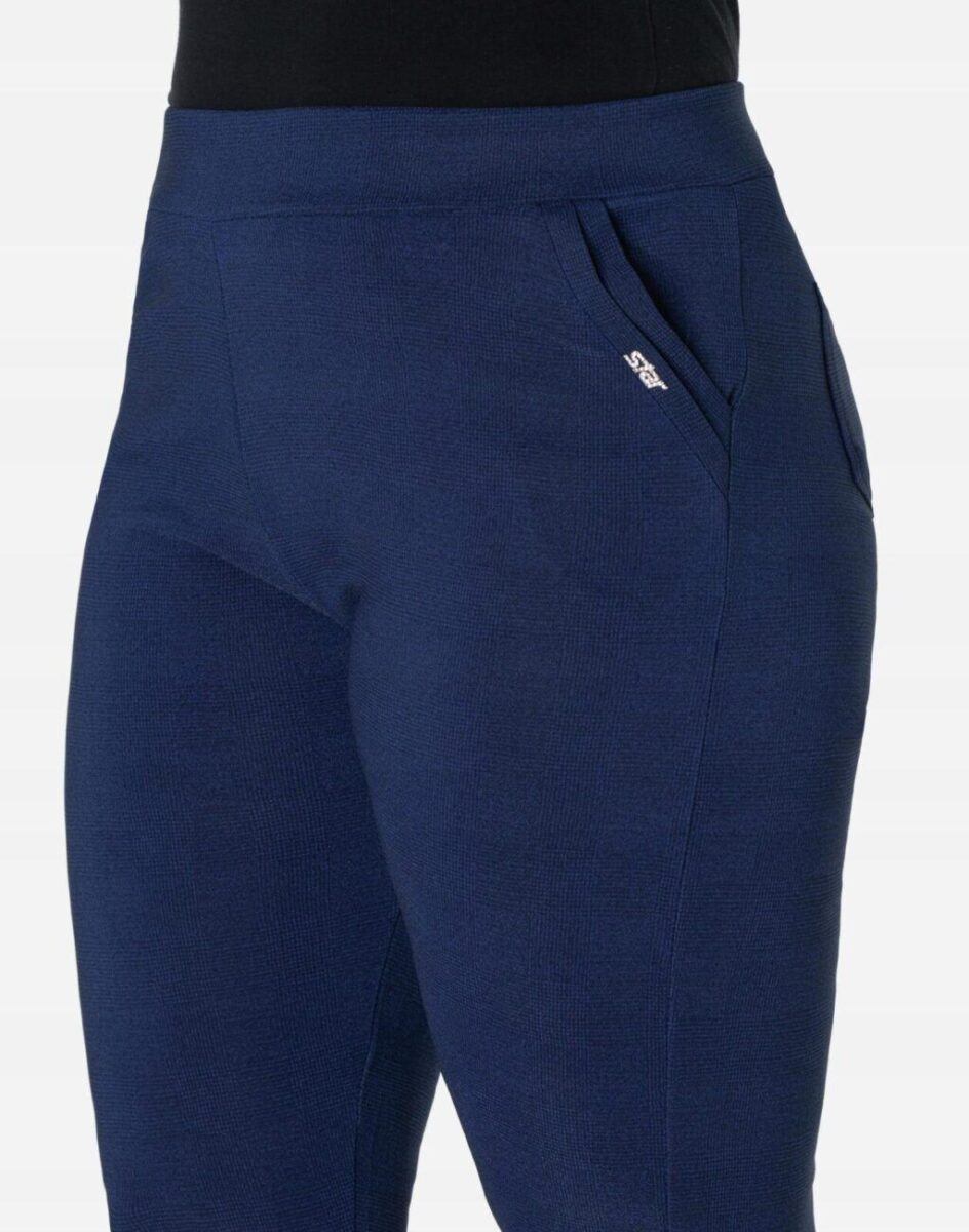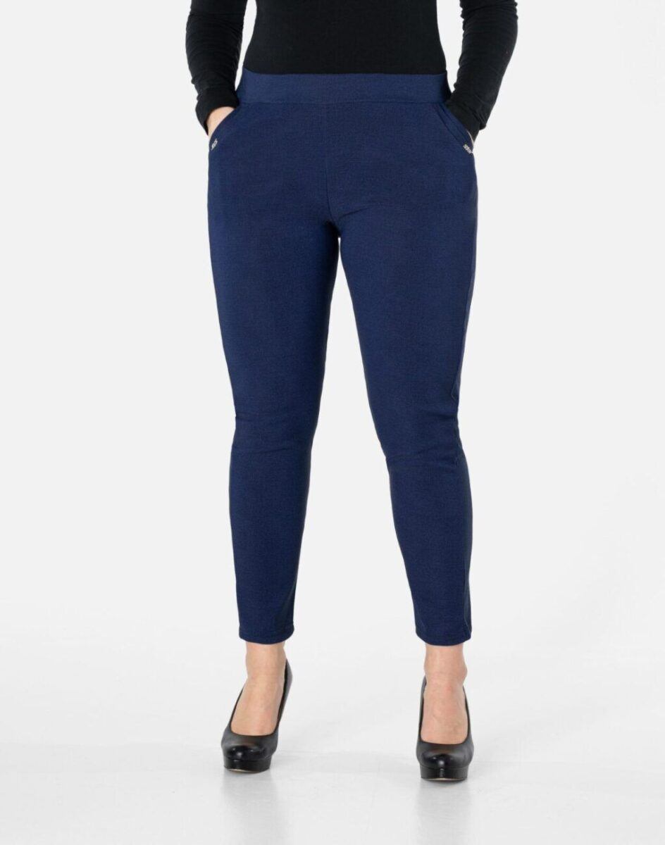 Wykonane z wysokiej jakości dzianiny spodniowej średniej grubości z dodatkiem elastanu dzięki czemu spodnie są bardziej elastyczne, bardzo dobrze się układają i dopasowują do każdej figury. Pozwalają na pełną swobodę ruchów co daje komfort przy siadaniu i zapewnia ogromny komfort noszenia. Trwałe i elastyczne wykończenie spodni (użycie do produkcji elastycznych nici) gwarantuje komfort i wygodę ich użytkownikowi w każdych warunkach, a tkanina jest na tyle gruba, że nie widać przez nią bielizny. Sprawdzony przez wiele zadowolonych klientek uniwersalni i modny krój typu cygaretki z lekko zwężoną nogawką 7/8 i wyższym stanem, które założysz na wiele różnych okazji.