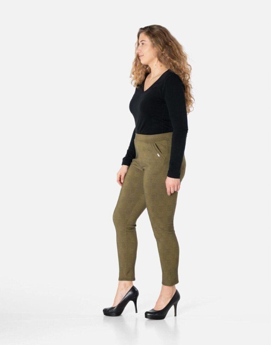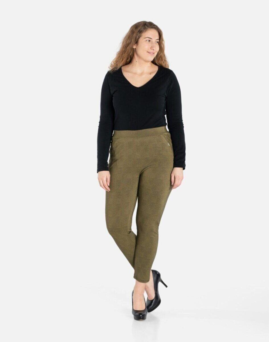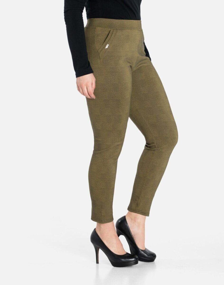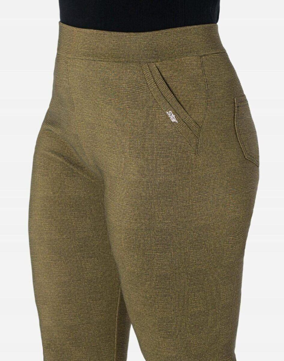 Wykonane z wysokiej jakości dzianiny spodniowej średniej grubości z dodatkiem elastanu dzięki czemu spodnie są bardziej elastyczne, bardzo dobrze się układają i dopasowują do każdej figury. Pozwalają na pełną swobodę ruchów co daje komfort przy siadaniu i zapewnia ogromny komfort noszenia. Trwałe i elastyczne wykończenie spodni (użycie do produkcji elastycznych nici) gwarantuje komfort i wygodę ich użytkownikowi w każdych warunkach, a tkanina jest na tyle gruba, że nie widać przez nią bielizny. Sprawdzony przez wiele zadowolonych klientek uniwersalni i modny krój typu cygaretki z lekko zwężoną nogawką 7/8 i wyższym stanem, które założysz na wiele różnych okazji.