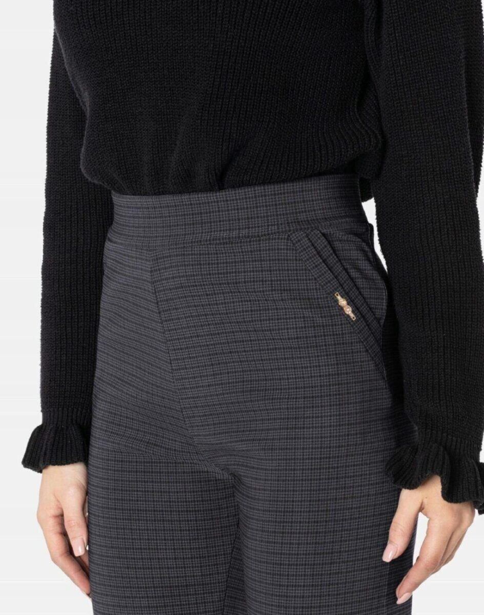 Spodnie F.Y.V. model 202116 to klasyczne, bardzo szykowne cygaretki damskie w stylu Glamour o wyszczuplającym optycznie kobiecą sylwetkę fasonie i wyższym stanie. Na bokach mają dwie wpuszczane kieszenie na dłonie a z tyłu dwie kieszenie naszywane. Dopasowanie w pasie zapewnia szeroki, elastyczny pas wyszczuplający który zgrabnie modeluje sylwetkę w talii. Jak w typowych cygaretkach nogawka lekko zwężana kończąca się na wysokości kostki co sprawia że sylwetka wygląda w nich lekko i zgrabnie.