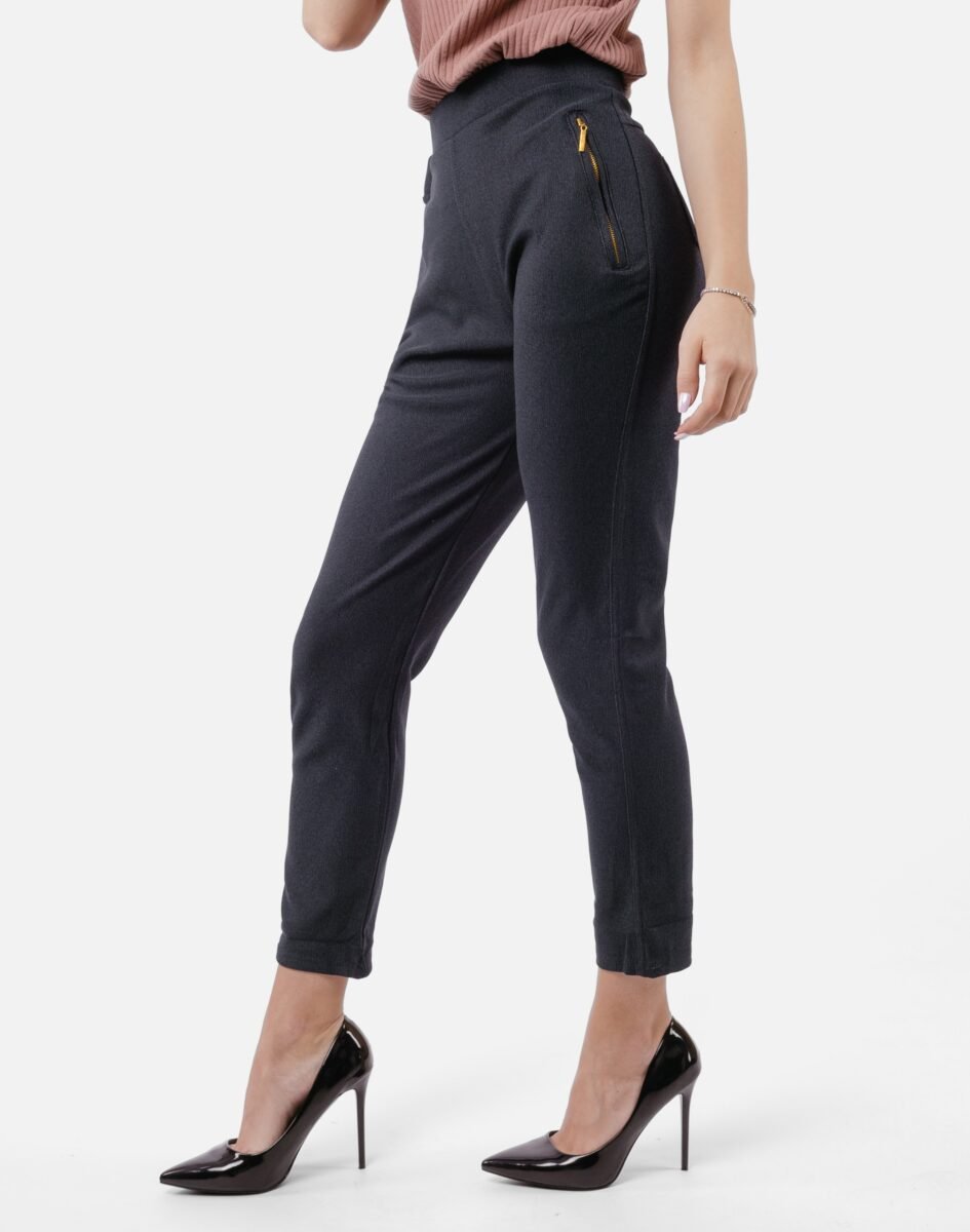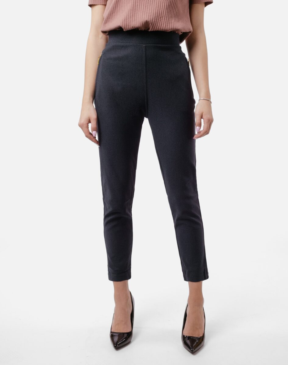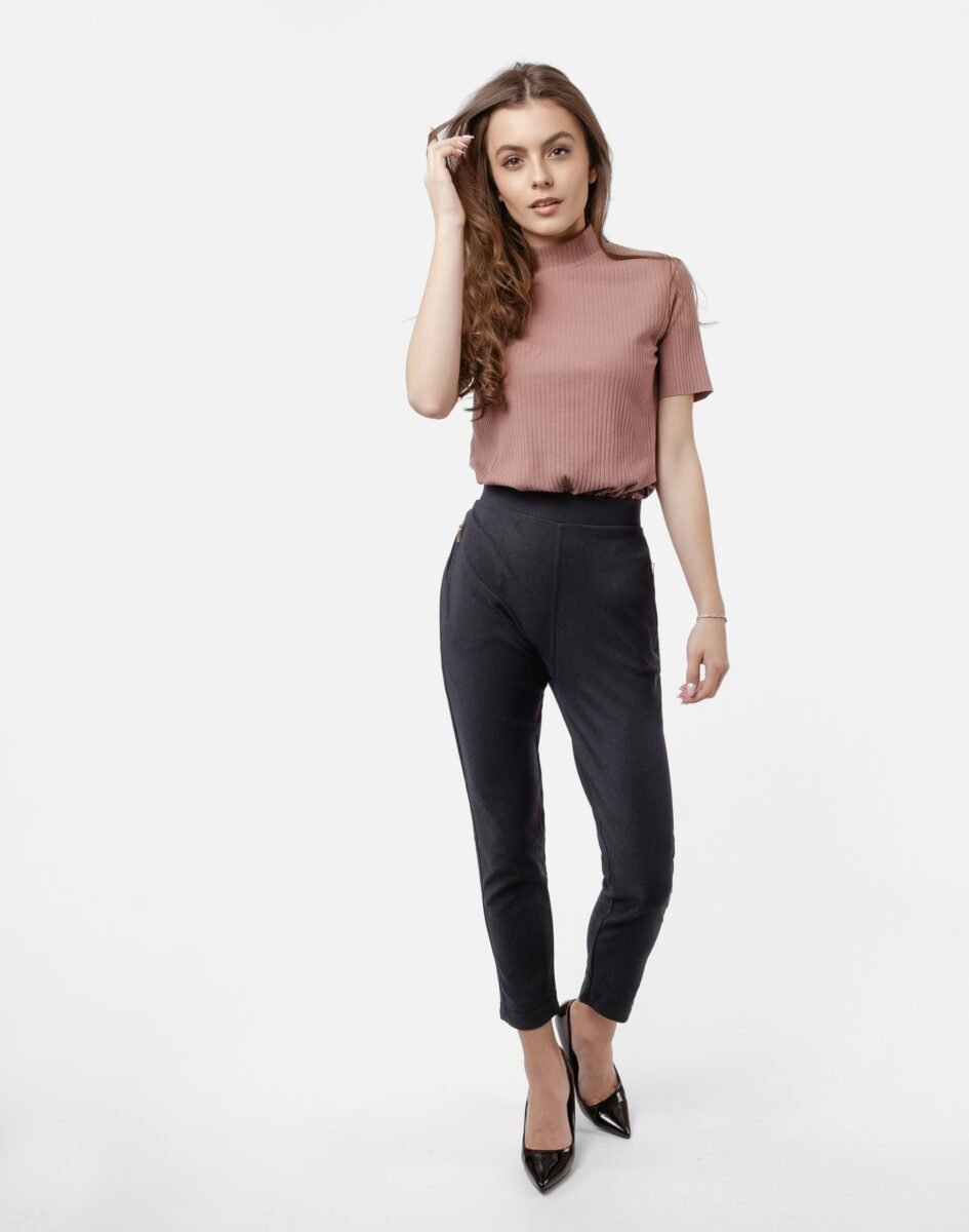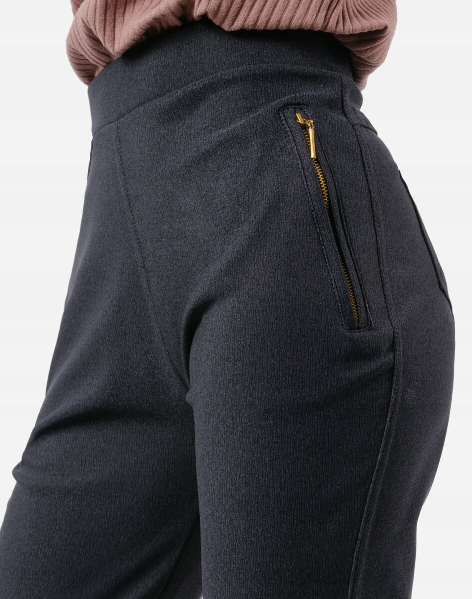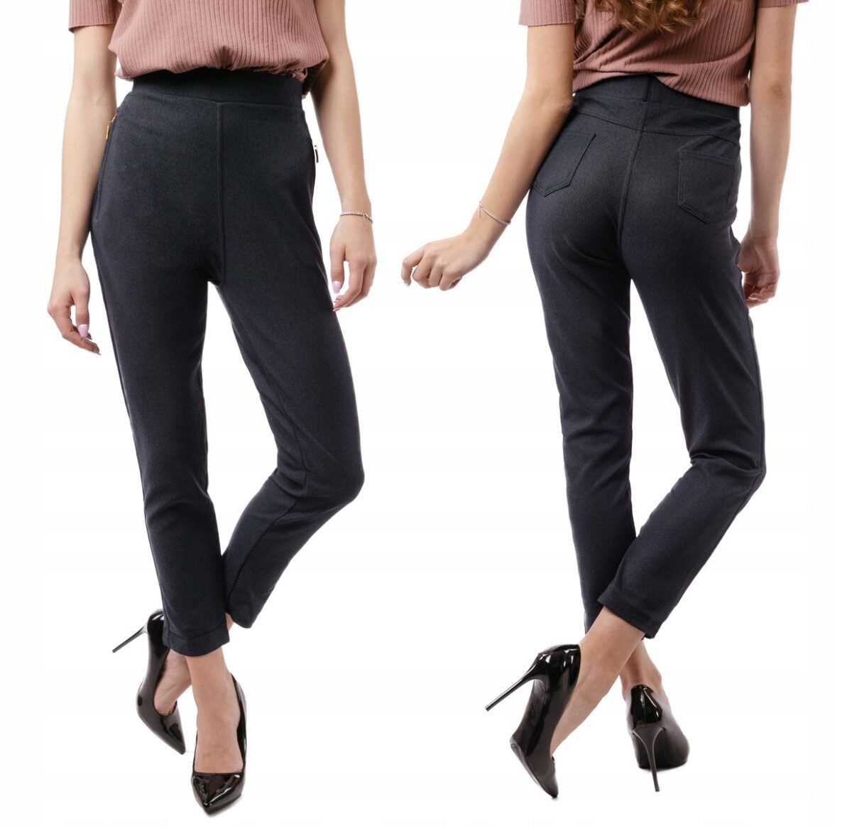 Wykonane z przyjemnej w dotyku dzianiny bawełnianej z dodatkiem elastanu dzięki czemu spodnie są bardziej elastyczne i bardzo dobrze dopasowują się do każdej figury. Trwałe i elastyczne wykończenie spodni (użycie do produkcji elastycznych nici) gwarantuje komfort i wygodę ich użytkownikowi w każdych warunkach, a tkanina jest na tyle gruba, że nie widać przez nią bielizny. Pozwalają na pełną swobodę ruchów, co daje komfort przy siadaniu i zapewnia ogromny komfort noszenia. Uniwersalny, zawsze modny krój typu cygaretki z lekko zwężoną nogawką i wyższym stanem, które założysz na wiele różnych okazji.