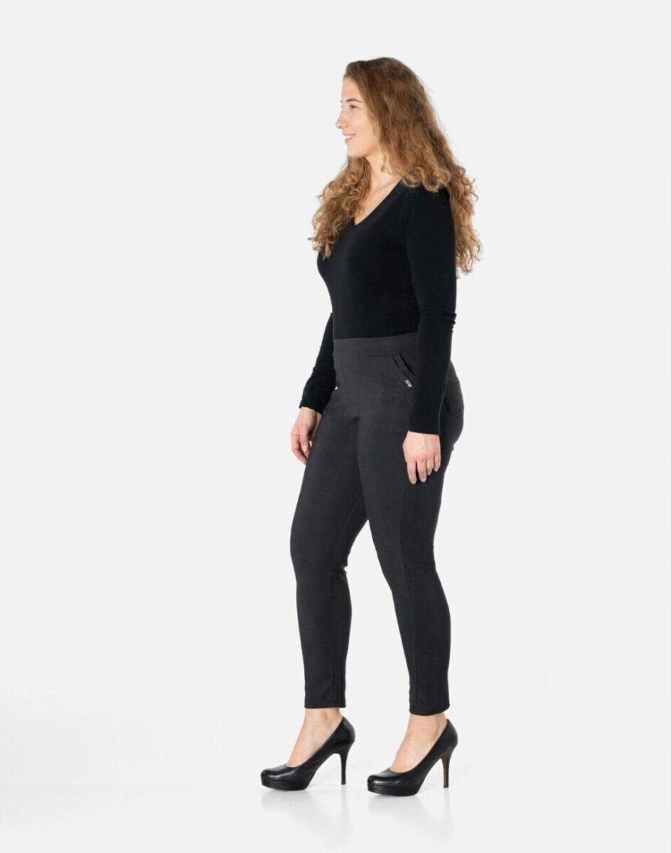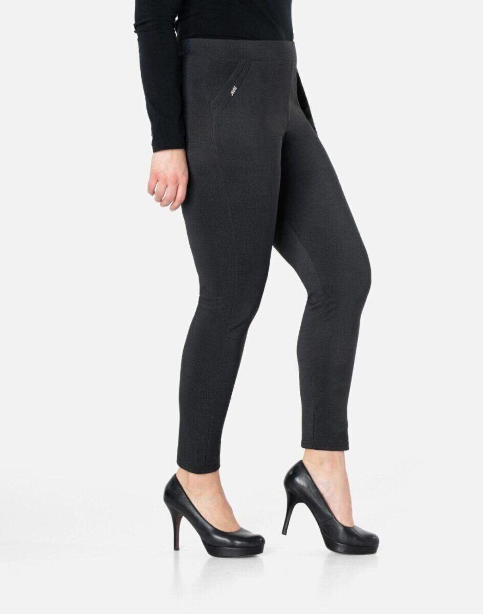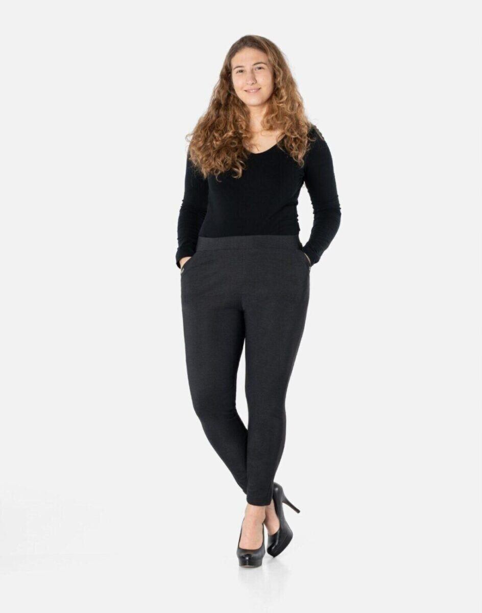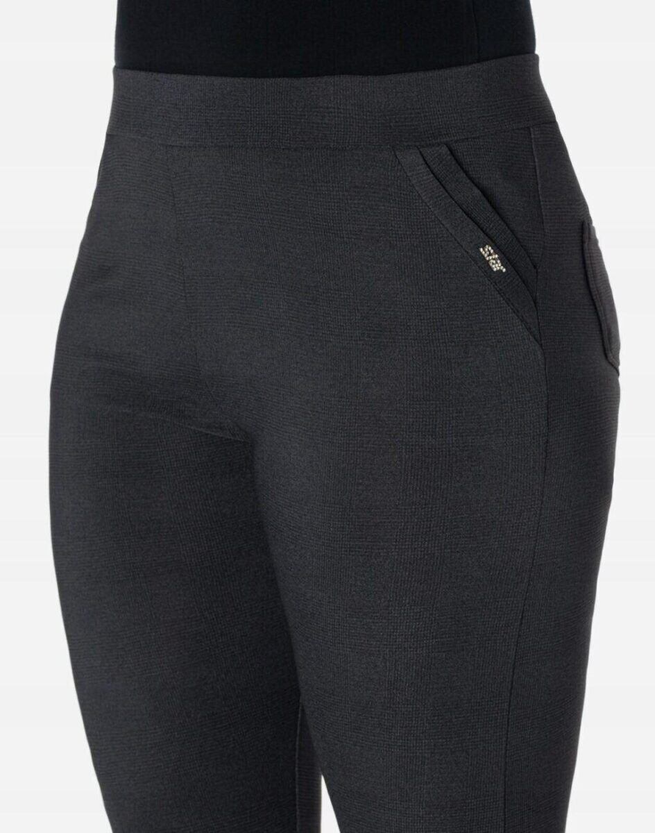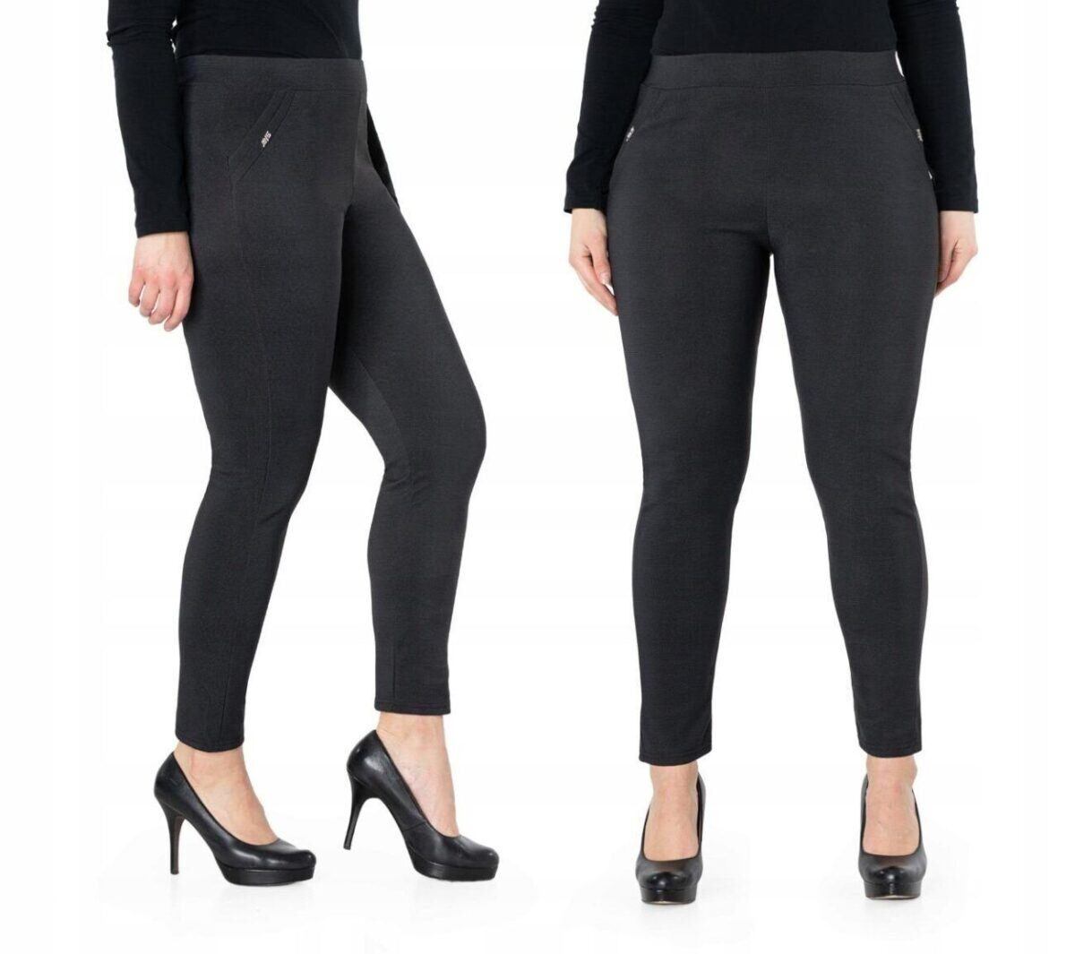 Wykonane z wysokiej jakości dzianiny spodniowej średniej grubości z dodatkiem elastanu dzięki czemu spodnie są bardziej elastyczne, bardzo dobrze się układają i dopasowują do każdej figury. Pozwalają na pełną swobodę ruchów co daje komfort przy siadaniu i zapewnia ogromny komfort noszenia. Trwałe i elastyczne wykończenie spodni (użycie do produkcji elastycznych nici) gwarantuje komfort i wygodę ich użytkownikowi w każdych warunkach, a tkanina jest na tyle gruba, że nie widać przez nią bielizny. Sprawdzony przez wiele zadowolonych klientek uniwersalni i modny krój typu cygaretki z lekko zwężoną nogawką 7/8 i wyższym stanem, które założysz na wiele różnych okazji.