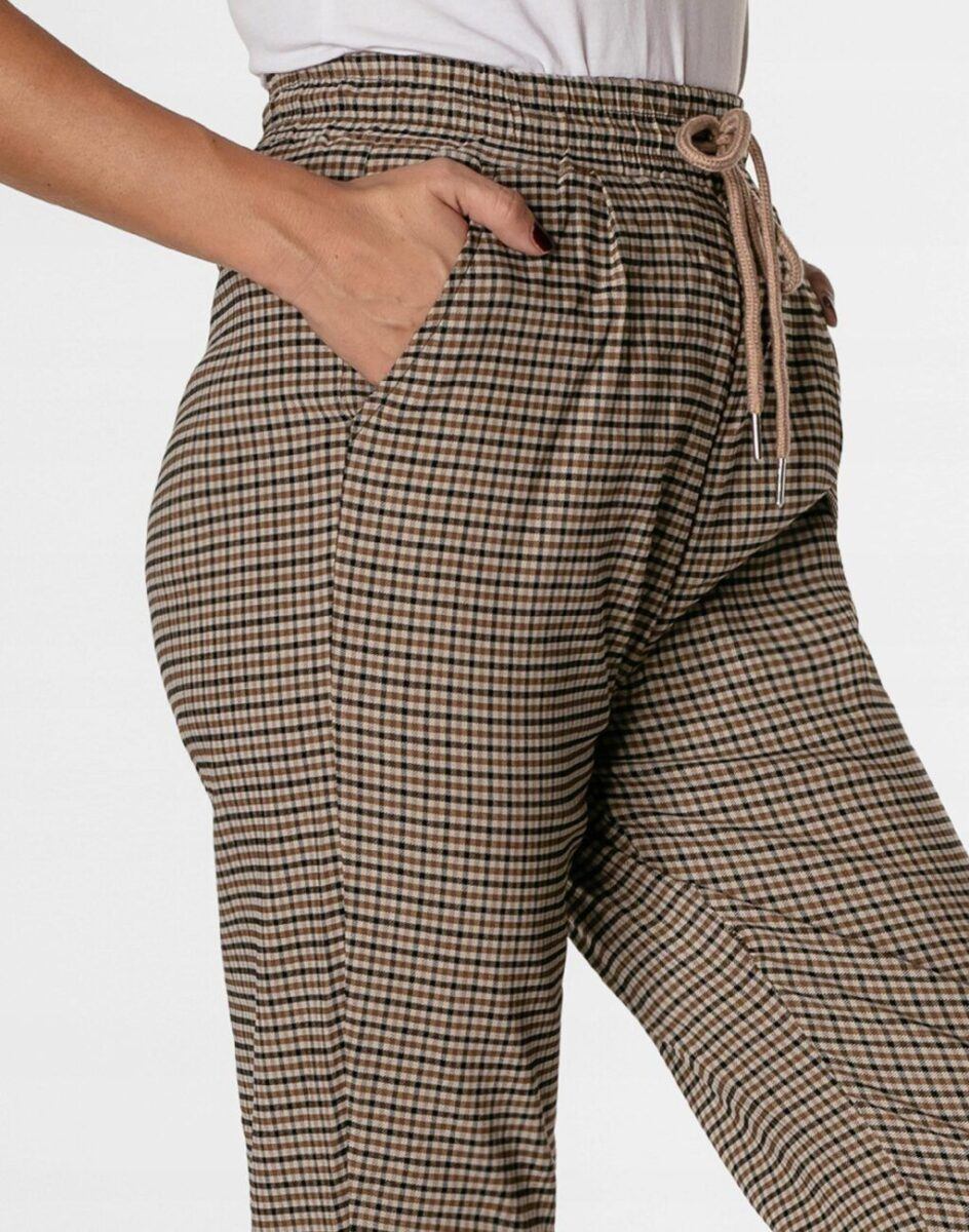 Spodnie damskie model 1922 to klasyczne, bardzo szykowne cygaretki w nieśmiertelnym stylu Glamour o wyszczuplającym optycznie kobiecą sylwetkę fasonie i wyższym stanie. Dopasowanie w talii zapewnia szeroki, elastyczny pas ściągający oraz dodatkowo wpuszczona w pasek taśma regulacyjna z możliwością jej zawiązywania. Na bokach spodni dwie ukośne wpuszczane kieszenie na dłonie. Jak w typowych cygaretkach nogawka lekko zwężana kończąca się na wysokości kostki co sprawia że sylwetka wygląda w nich lekko i zgrabnie.