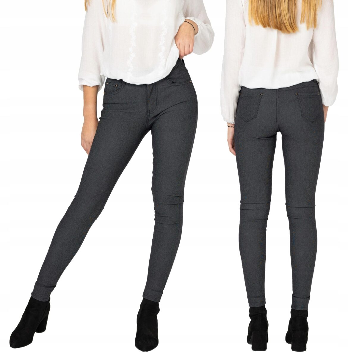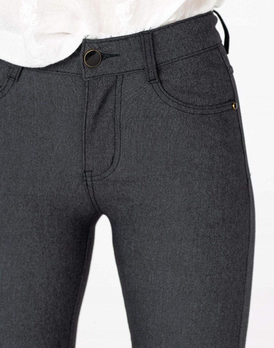 Wykonane z wysokiej jakości bawełny organicznej z dodatkiem poliestru oraz elastanu dzięki czemu spodnie są bardziej elastyczne i bardzo dobrze dopasowują się do każdej figury. Trwałe i elastyczne wykończenie spodni (użycie do produkcji elastycznych nici) gwarantuje komfort i wygodę ich użytkownikowi w każdych warunkach. Pozwala na pełną swobodę ruchów co daje komfort przy siadaniu i zapewnia ogromny komfort noszenia. Uniwersalny zawsze modny krój typu cygaretki/rurki ze zwężoną nogawką i wyższym stanem które założysz na wiele różnych okazji.