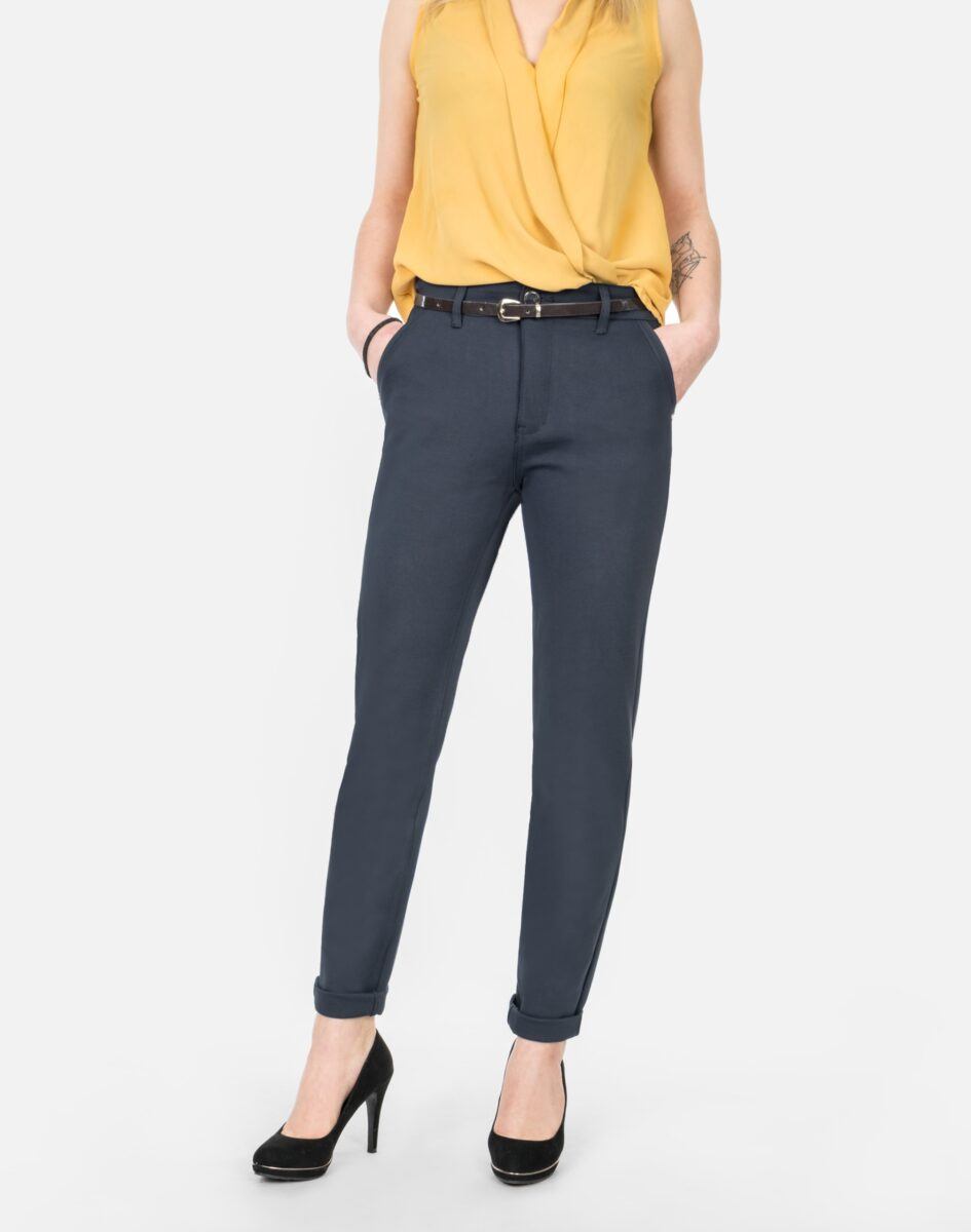 Klasyczne, a jednocześnie zawsze nowoczesne, urzekają minimalistycznym wzornictwem, dobrze wyglądają również z podwiniętymi nogawkami. Modny i sprawdzony krój spodni sprawi, że w zależności od dopasowanego do nich elementu garderoby, będziesz zawsze odpowiednio ubrana na każdą okazję, zarówno na "sportowo" jak i na "elegancko".