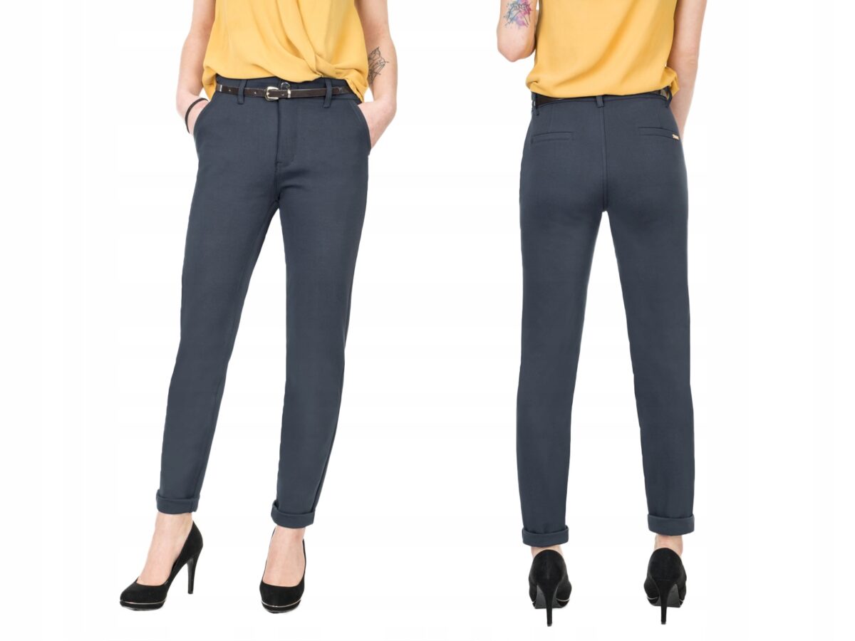 Klasyczne, a jednocześnie zawsze nowoczesne, urzekają minimalistycznym wzornictwem, dobrze wyglądają również z podwiniętymi nogawkami. Modny i sprawdzony krój spodni sprawi, że w zależności od dopasowanego do nich elementu garderoby, będziesz zawsze odpowiednio ubrana na każdą okazję, zarówno na "sportowo" jak i na "elegancko".