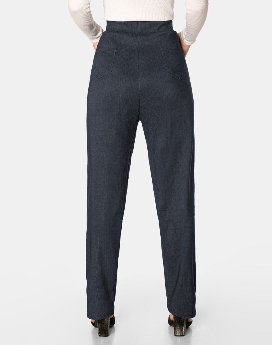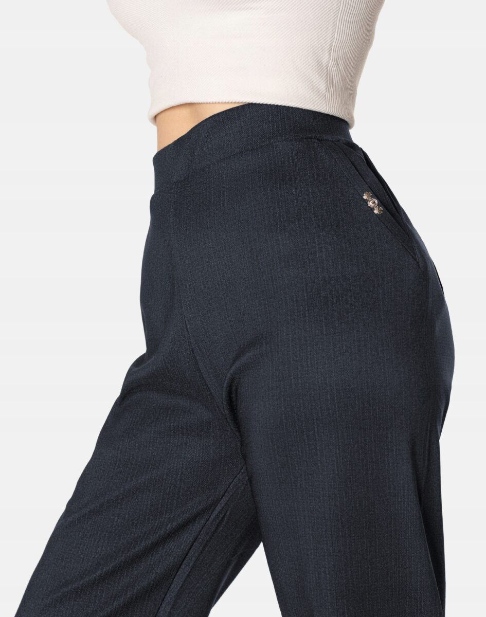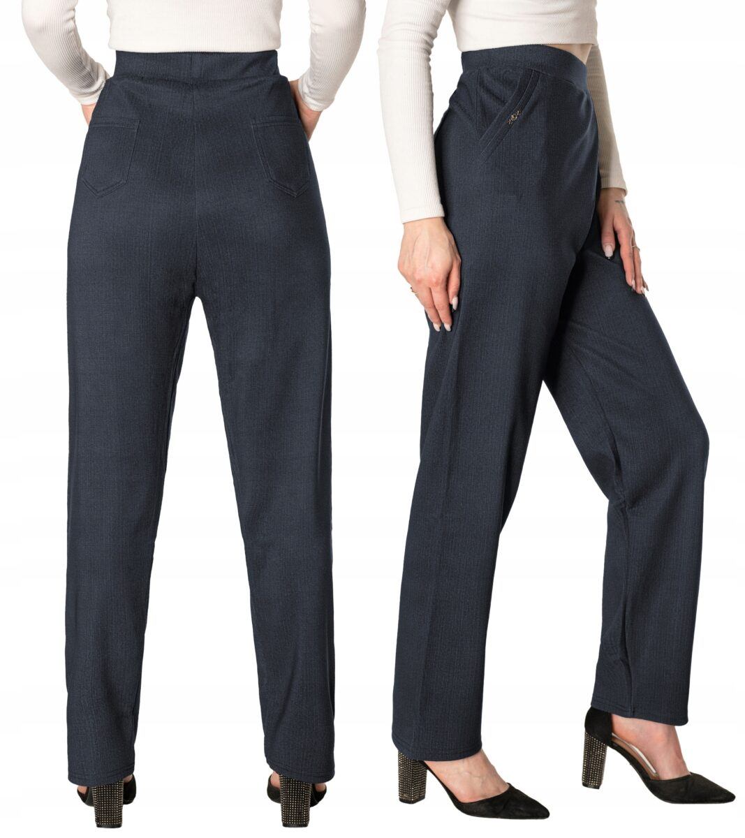 Wykonane z wysokiej jakości dzianiny średniej grubości z niewielkim dodatkiem elastanu (lycra) dzięki czemu spodnie są bardziej elastyczne, bardzo dobrze się układają i dopasowują do każdej figury. Pozwalają na pełną swobodę ruchów co daje komfort przy siadaniu i zapewnia ogromny komfort noszenia. Trwałe i elastyczne wykończenie spodni (użycie do produkcji elastycznych nici) gwarantuje komfort i wygodę ich użytkownikowi w każdych warunkach, a tkanina jest na tyle gruba, że nie widać przez nią bielizny. Sprawdzony przez wiele zadowolonych klientek uniwersalny i modny krój typu cygaretki z lekko zwężoną nogawką i wyższym stanem, które założysz na wiele różnych okazji.