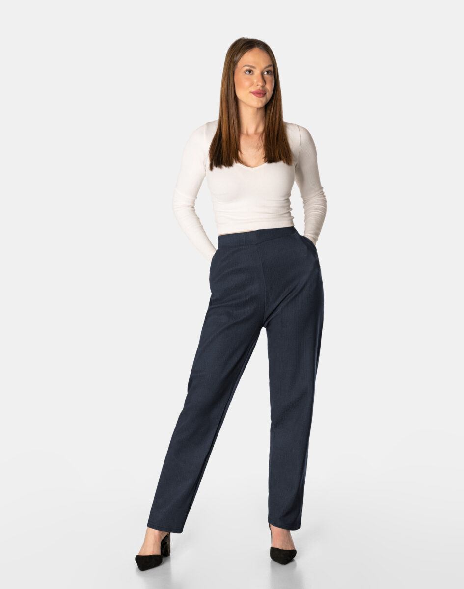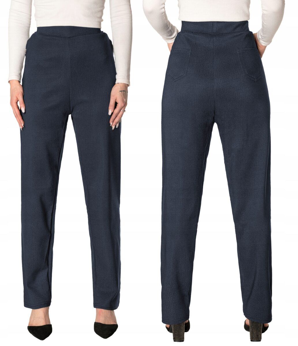 Wykonane z wysokiej jakości dzianiny średniej grubości z niewielkim dodatkiem elastanu (lycra) dzięki czemu spodnie są bardziej elastyczne, bardzo dobrze się układają i dopasowują do każdej figury. Pozwalają na pełną swobodę ruchów co daje komfort przy siadaniu i zapewnia ogromny komfort noszenia. Trwałe i elastyczne wykończenie spodni (użycie do produkcji elastycznych nici) gwarantuje komfort i wygodę ich użytkownikowi w każdych warunkach, a tkanina jest na tyle gruba, że nie widać przez nią bielizny. Sprawdzony przez wiele zadowolonych klientek uniwersalny i modny krój typu cygaretki z lekko zwężoną nogawką i wyższym stanem, które założysz na wiele różnych okazji.