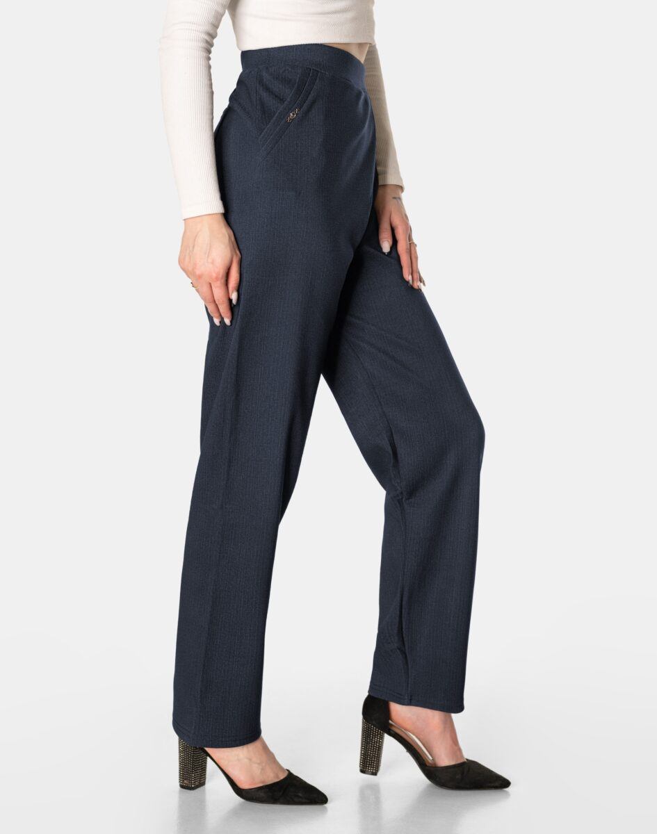 Eleganckie spodnie wizytowe damskie model 2023335 to klasyczne, bardzo szykowne cygaretki w nieśmiertelnym stylu Glamour o wyszczuplającym optycznie kobiecą sylwetkę fasonie i wyższym stanie. Dopasowanie w pasie zapewnia szeroki elastyczny pas ściągający, który zgrabnie modeluje sylwetkę w talii. Na bokach mają dwie skośne wpuszczane kieszenie na dłonie, z tyłu na pośladkach dwie kieszonki naszywane. Jak w typowych cygaretkach nogawka lekko zwężana co sprawia że sylwetka wygląda w nich lekko i zgrabnie.