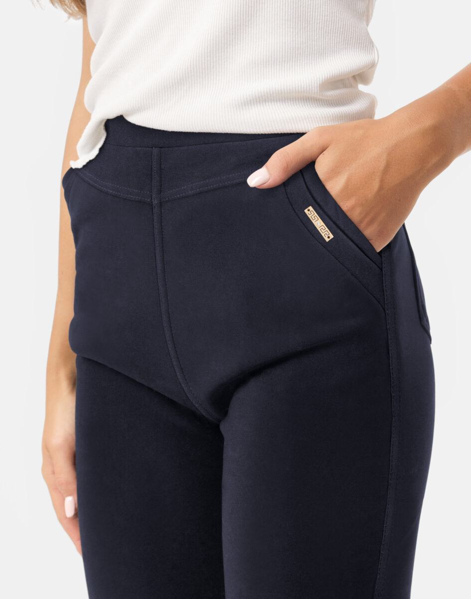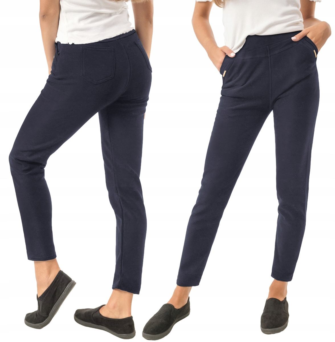 Ciepłe spodnie damskie bardzo szykowne cygaretki w stylu Glamour na jesień zimę z podwyższonym stanem i ocieplone od wewnętrznej strony sztucznym futerkiem. Z przodu mają dwie kieszenie wpuszczane na dłonie z tyłu dwie kieszonki naszywane. Dopasowanie w pasie zapewnia szeroki elastyczny pas ściągający zgrabnie modelujący sylwetkę w talii. Jak w typowych cygaretkach nogawka zwężana kończąca się na wysokości kostki dzięki temu sylwetka wygląda w nich lekko i zgrabnie. Oferowane przez nas spodnie są unikalnym połączeniem wysokiej jakości tkaniny bawełnianej z dodatkiem poliestru i spandexu, a od wewnątrz bardzo ciepłego i przyjemnego w kontakcie ze skórą sztucznego futerka. Dodatek spandexu sprawia że spodnie są bardziej elastyczne co pozwala na pełną swobodę ruchów, daje komfort przy siadaniu i zapewnia ogromny komfort noszenia. Warstwa wewnętrzna spodni wykonana z ciepłego futerka ma za zadanie zapewnić oddychalność i maksymalną ochronę w zmiennych warunkach i niskiej temperaturze. Takie wykończenie wewnętrznej strony spodni zapewnia bardzo wysoki wskaźnik ochrony termicznej, jak również zdecydowanie podnosi komfort użytkowania tych spodni jesienią a zwłaszcza zimą. Spodnie są przez to bardzo ciepłe, wygodne i oddychające (utrzymują ciepły i suchy mikroklimat skóry), a jednocześnie wyjątkowo lekkie.