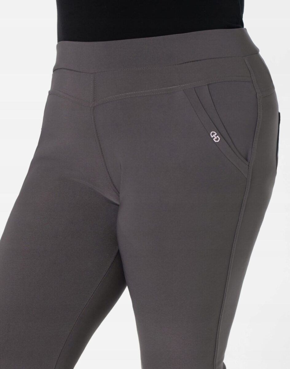 Klasyczne, bardzo szykowne spodnie rybaczki damskie w stylu Glamour o wyszczuplającym optycznie kobiecą sylwetkę fasonie i wysokim stanie. Na bokach mają dwie wpuszczane kieszenie na dłonie a z tyłu dwie kieszonki naszywane. Dopasowanie w pasie zapewnia szeroki, elastyczny pas wyszczuplający, który zgrabnie modeluje sylwetkę w talii. Nie mają żadnego zamka, guzików ani niewygodnych szwów, a tkanina jest na tyle gruba że nie widać przez nią bielizny. Uniwersalny, zawsze modny krój z klasyczną lekko zwężoną nogawką i wyższym stanem, które założysz na wiele różnych okazji.