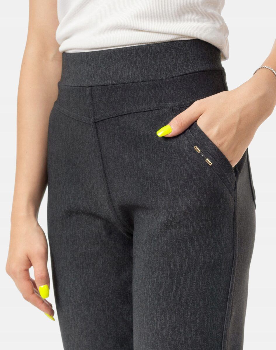 Klasyczne, bardzo szykowne spodnie rybaczki damskie w stylu Glamour o wyszczuplającym optycznie kobiecą sylwetkę fasonie i wyższym stanie. Na bokach mają dwie wpuszczane kieszenie na dłonie a z tyłu dwie kieszonki naszywane. Dopasowanie w pasie zapewnia szeroki, elastyczny pas wyszczuplający, który zgrabnie modeluje sylwetkę w talii. Nie mają żadnego zamka, guzików ani niewygodnych szwów, a tkanina jest na tyle gruba że nie widać przez nią bielizny. Uniwersalny, zawsze modny krój z klasyczną lekko zwężoną nogawką i wyższym stanem, które założysz na wiele różnych okazji.