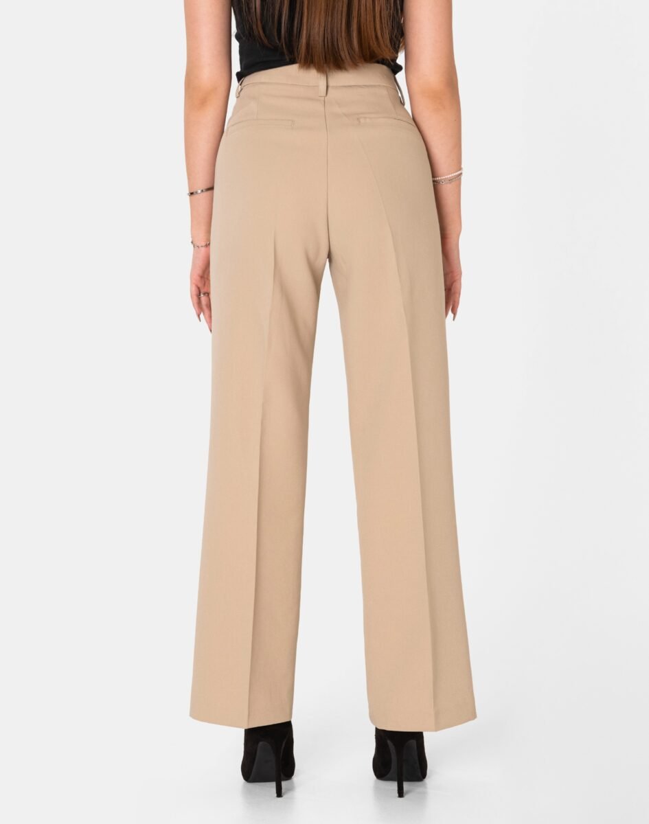 Eleganckie spodnie wizytowe model F10021# to powracające do łask spodnie damskie typu szwedy/dzwony wide leg, o charakterystycznych dla tego modelu nogawkach wide, rozszerzających się już od bioder. Uszyte z wysokiej jakości cienkiej tkaniny spodniowej, o drobnym zapewniającym dużą wytrzymałość splocie, odpornym na zużycie i odkształcanie dzięki czemu spodnie wyglądają jak nowe przez długie, długie lata. Są delikatnie elastyczne, nie gniotą się, ładnie dopasowują do sylwetki, i są bardzo komfortowe w użytkowaniu. Pozwalają na pełną swobodę ruchów, co daje wygodę przy siadaniu i zapewnia ogromny komfort noszenia. Najmodniejsze w tym sezonie szerokie, luźne nogawki typu szwedy, to doskonały pomysł na stylizację pozwalającą wyeksponować i podkreślić nogi, wyszczuplić sylwetkę oraz co bardzo ważne pięknie układają się w ruchu.
