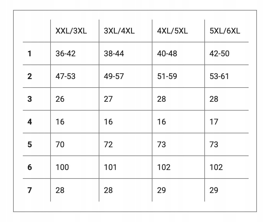 Rozmiar podany na metce przez producenta: 4XL/5XL (Sprawdź wymiary podane w tabeli)