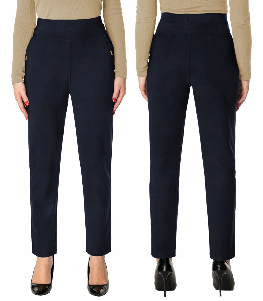 Wykonane z wysokiej jakości dzianiny bawełnianej średniej grubości z dodatkiem poliestru i elastanu (lycra) dzięki czemu spodnie są bardziej elastyczne, bardzo dobrze się układają i dopasowują do każdej figury. Pozwalają na pełną swobodę ruchów co daje komfort przy siadaniu i zapewnia ogromny komfort noszenia. Trwałe i elastyczne wykończenie spodni (użycie do produkcji elastycznych nici) gwarantuje komfort i wygodę ich użytkownikowi w każdych warunkach, a tkanina jest na tyle gruba, że nie widać przez nią bielizny. Sprawdzony przez wiele zadowolonych klientek uniwersalny i modny krój typu cygaretki z lekko zwężoną nogawką i wyższym stanem, które założysz na wiele różnych okazji. Ten prosty fason prezentuje się bardzo dobrze na wielu sylwetkach, dodając im lekkości (wystarczy do stroju dołożyć szpilki) i wysmuklając linię. Zbudujesz z nimi wiele zestawów, które będą wyglądały profesjonalnie i jednocześnie bardzo stylowo.