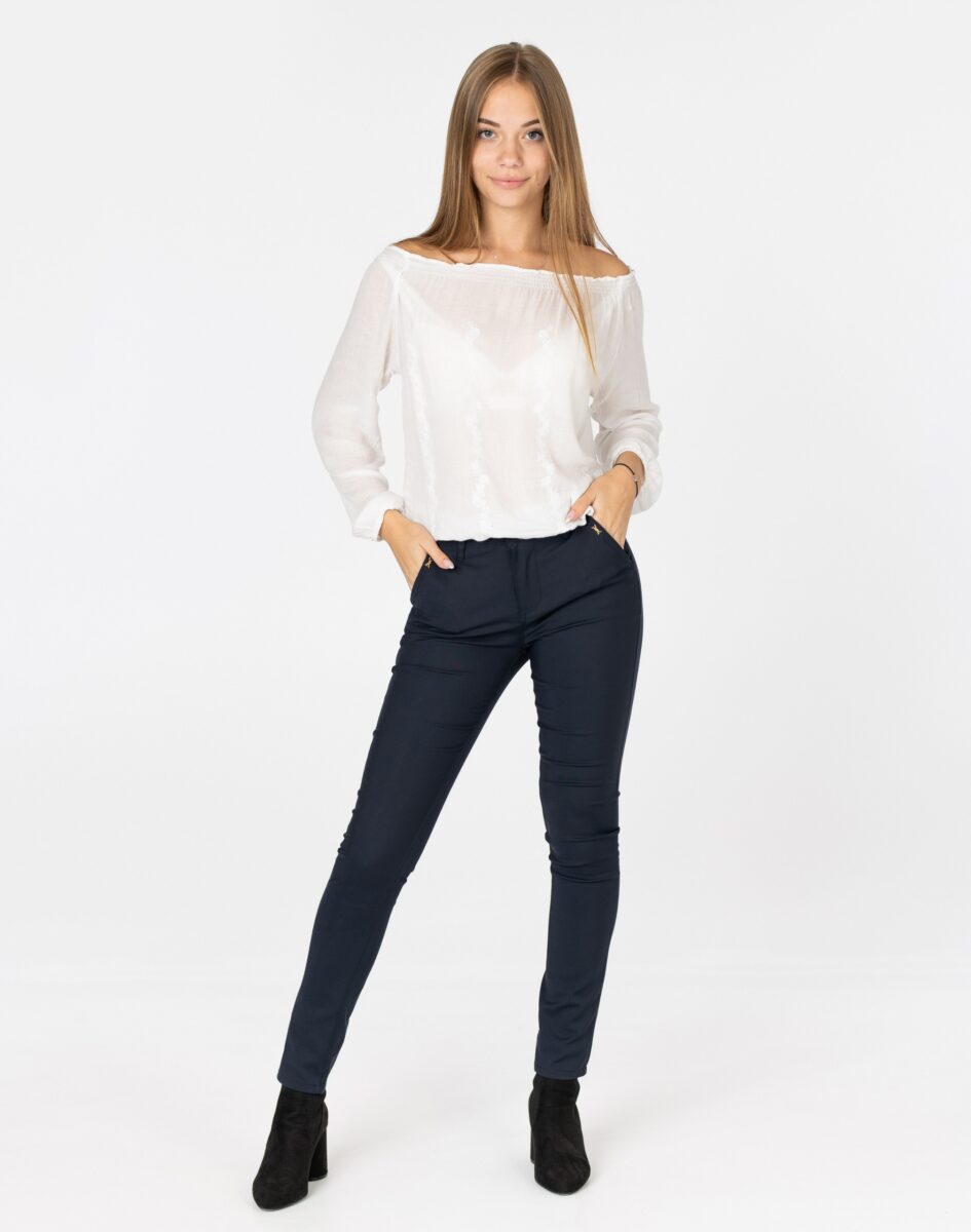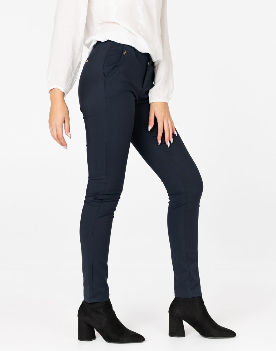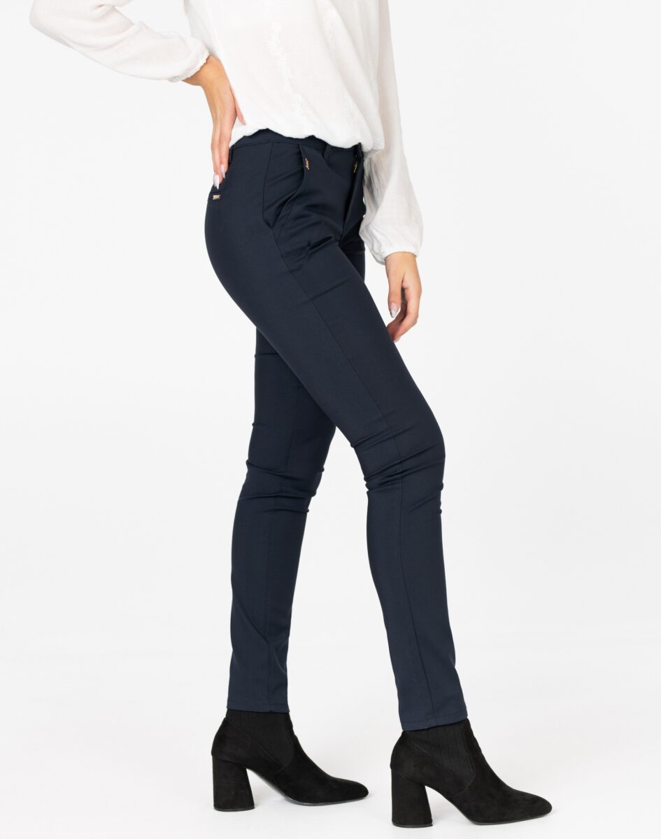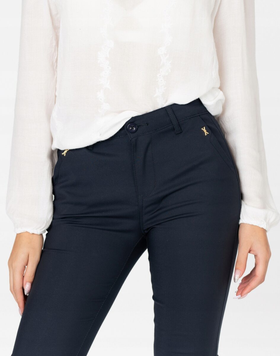 Wykonane z wysokiej jakości bawełny organicznej z dodatkiem poliestru oraz spandexu dzięki czemu spodnie są bardziej elastyczne i bardzo dobrze dopasowują się do każdej figury. Trwałe i elastyczne wykończenie spodni (użycie do produkcji elastycznych nici) gwarantuje komfort i wygodę ich użytkownikowi w każdych warunkach. Pozwala na pełną swobodę ruchów co daje komfort przy siadaniu i zapewnia ogromny komfort noszenia. Uniwersalny zawsze modny krój typu cygaretki/rurki ze zwężoną nogawką i wyższym stanem które założysz na wiele różnych okazji.