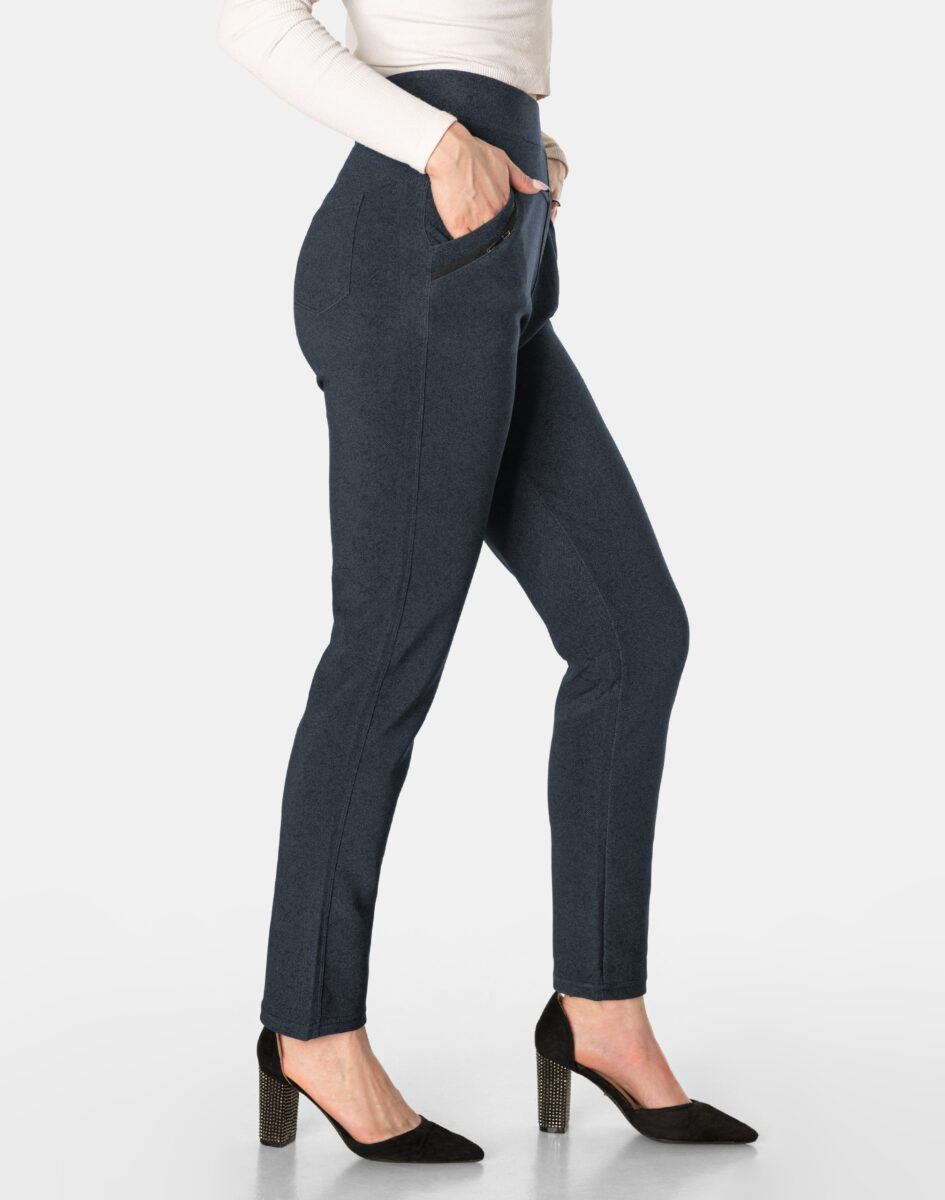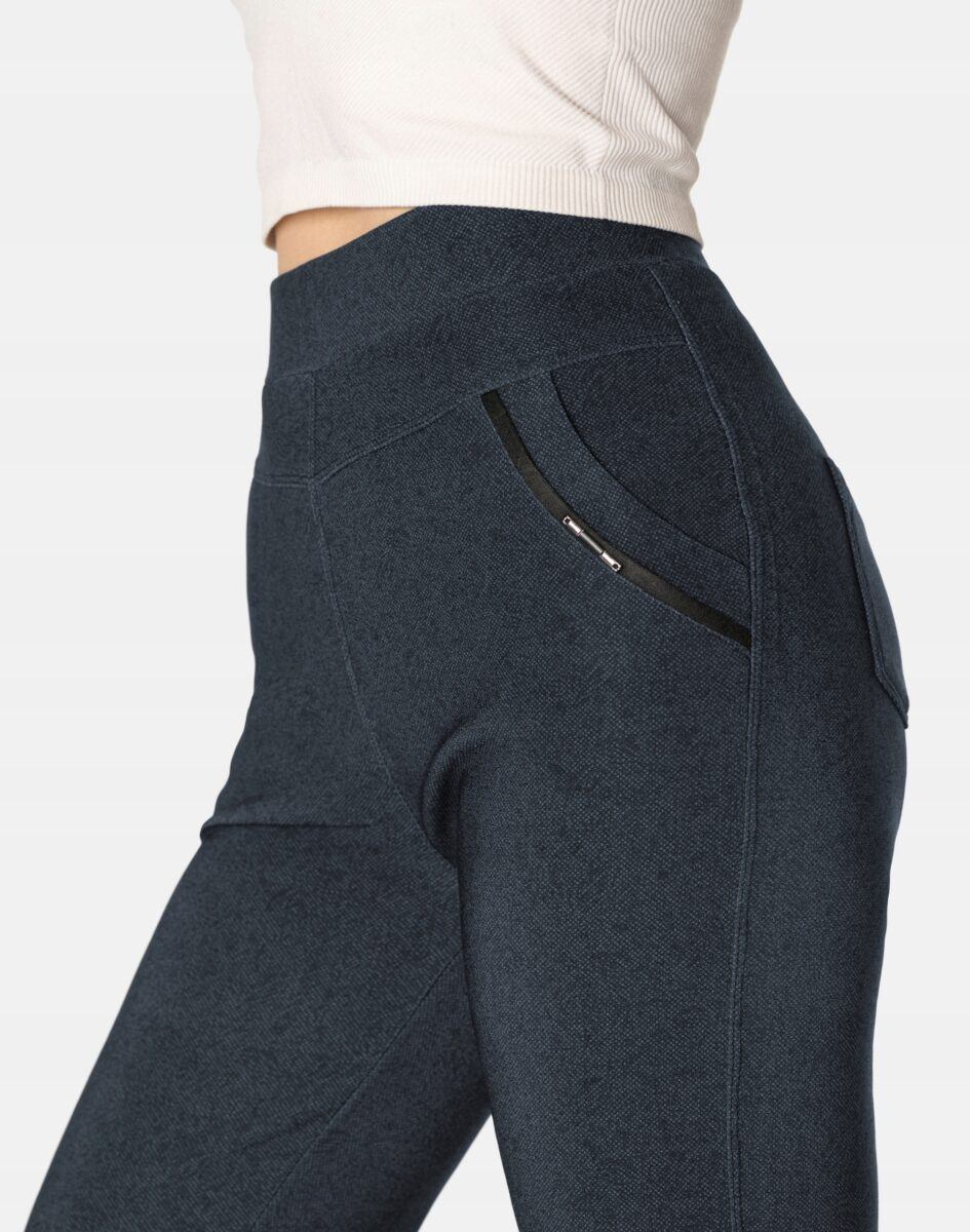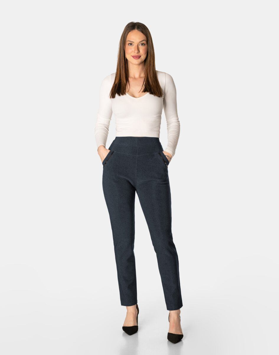 Wykonane z wysokiej jakości dzianiny bawełnianej średniej grubości z niewielkim dodatkiem poliestru (lycra) dzięki czemu spodnie są bardziej elastyczne, bardzo dobrze się układają i dopasowują do każdej figury. Pozwalają na pełną swobodę ruchów co daje komfort przy siadaniu i zapewnia ogromny komfort noszenia. Trwałe i elastyczne wykończenie spodni (użycie do produkcji elastycznych nici) gwarantuje komfort i wygodę ich użytkownikowi w każdych warunkach, a tkanina jest na tyle gruba, że nie widać przez nią bielizny. Sprawdzony przez wiele zadowolonych klientek uniwersalny i modny krój typu cygaretki z lekko zwężoną nogawką i wyższym stanem, które założysz na wiele różnych okazji.