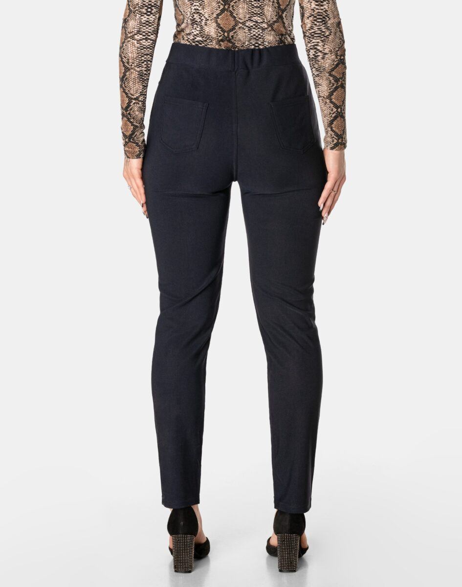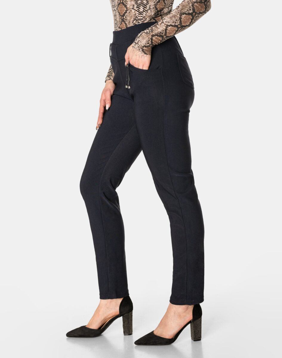 Wykonane z wysokiej jakości dzianiny bawełnianej średniej grubości z dodatkiem spandexu (lycra) dzięki czemu spodnie są bardziej elastyczne, bardzo dobrze się układają i dopasowują do każdej figury. Pozwalają na pełną swobodę ruchów co daje komfort przy siadaniu i zapewnia ogromny komfort noszenia. Trwałe i elastyczne wykończenie spodni (użycie do produkcji elastycznych nici) gwarantuje komfort i wygodę ich użytkownikowi w każdych warunkach, a tkanina jest na tyle gruba, że nie widać przez nią bielizny. Sprawdzony przez wiele zadowolonych klientek uniwersalny i modny krój typu cygaretki z lekko zwężoną nogawką i wyższym stanem, które założysz na wiele różnych okazji.
