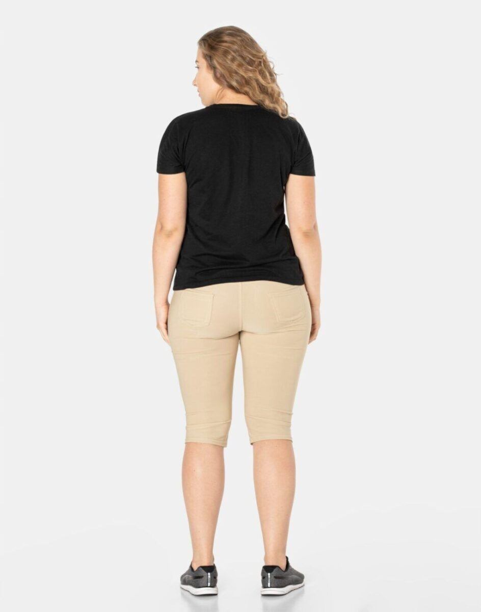 Spodenki damskie Capri L701 to komfortowo skrojony model o wyszczuplającym optycznie kobiecą sylwetkę fasonie i wyższym stanie. Na bokach mają dwie wpuszczane, skośne kieszenie na dłonie zasuwane na zamki błyskawiczne. Z tyłu dwie kieszonki naszywane. Dopasowanie w pasie zapewnia szeroki, elastyczny pas wyszczuplający, który zgrabnie modeluje sylwetkę w talii. Nie mają żadnego zamka, guzików ani niewygodnych szwów. Uniwersalny, zawsze modny krój z wąską dopasowaną nogawką i wyższym stanem, które założysz na wiele różnych okazji.